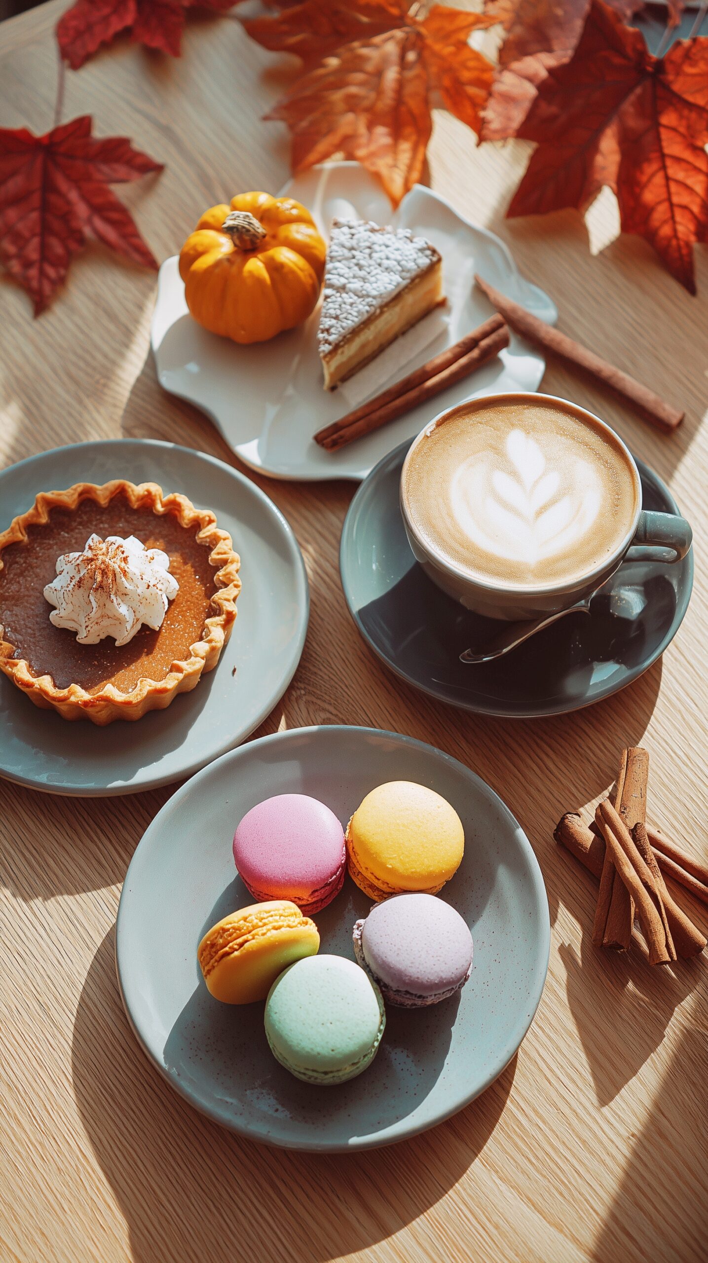 【スマホ壁紙】マカロンと秋のカフェスイーツ&ラテアート・フリー素材03