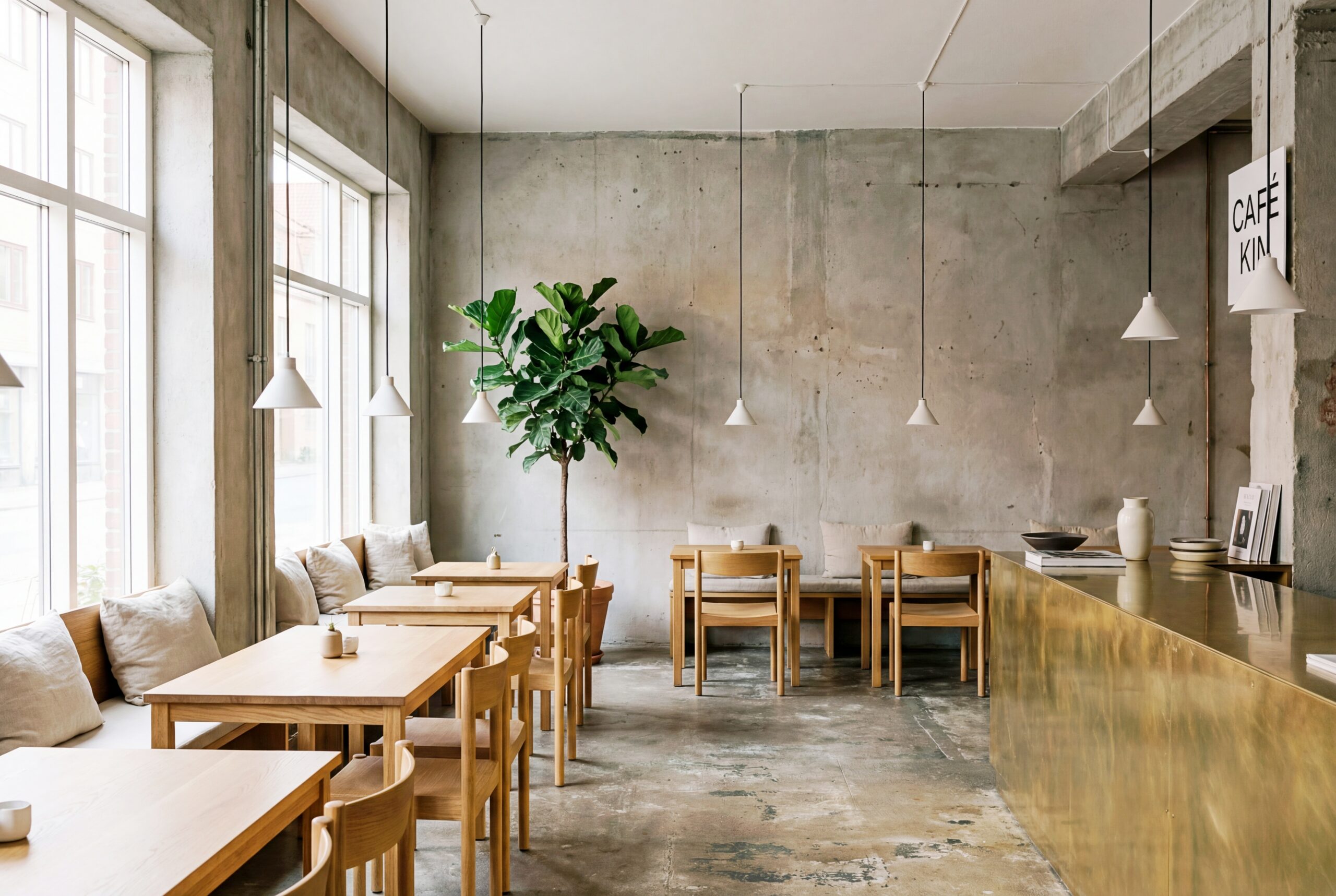 検索タグ:カフェ、インテリア、cafe、interior、店内、飲食店、オシャレ、お洒落、おしゃれ、フリー素材、フリー画像、AI生成画像、コピースペース、テキストスペース、無料画像、カフェテーブル、カフェタイム、table、テーブル席、インテリア、室内、内装、内観、デザイン、モダン、イメージ画像
