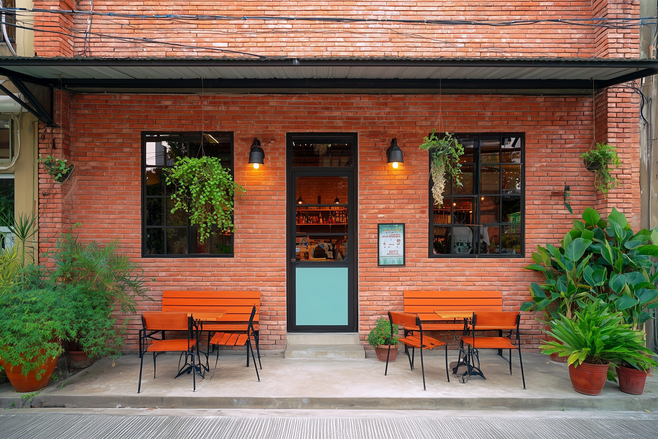 検索タグ:カフェ、cafe、飲食店、オシャレ、お洒落、おしゃれ、外観、お店、外装、店舗、フリー素材、フリー画像、AI生成画像、喫茶店、Store、デザイン、イメージ画像、モダン、Design、イメージ素材、レトロ、昭和レトロ、レンガ、レンガ調、建築、外観デザイン