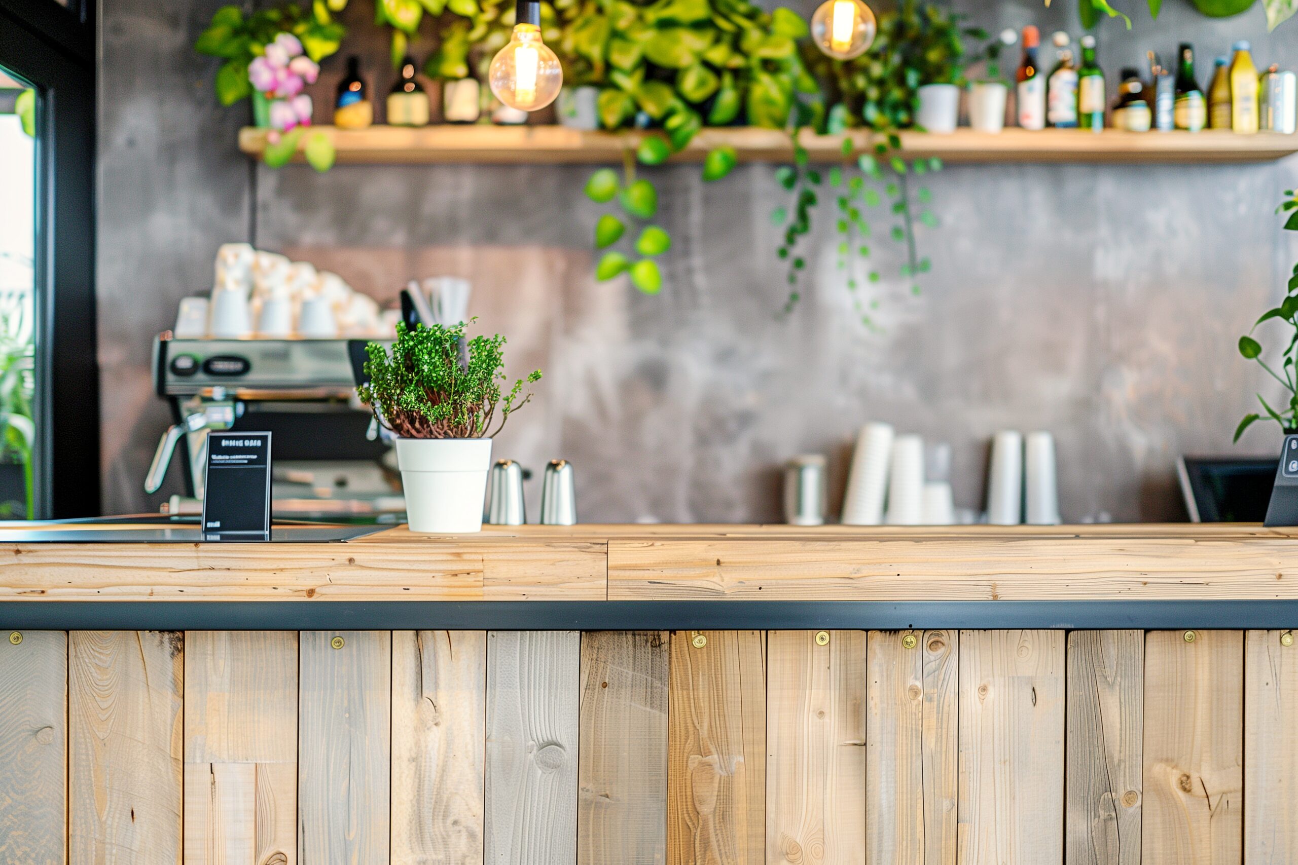 おしゃれなカフェカウンター背景のフリー素材をまとめました。木目のナチュラルなカウンターや、落ち着いた雰囲気のカフェ内装など、ブログやSNS、YouTubeサムネイルに...
