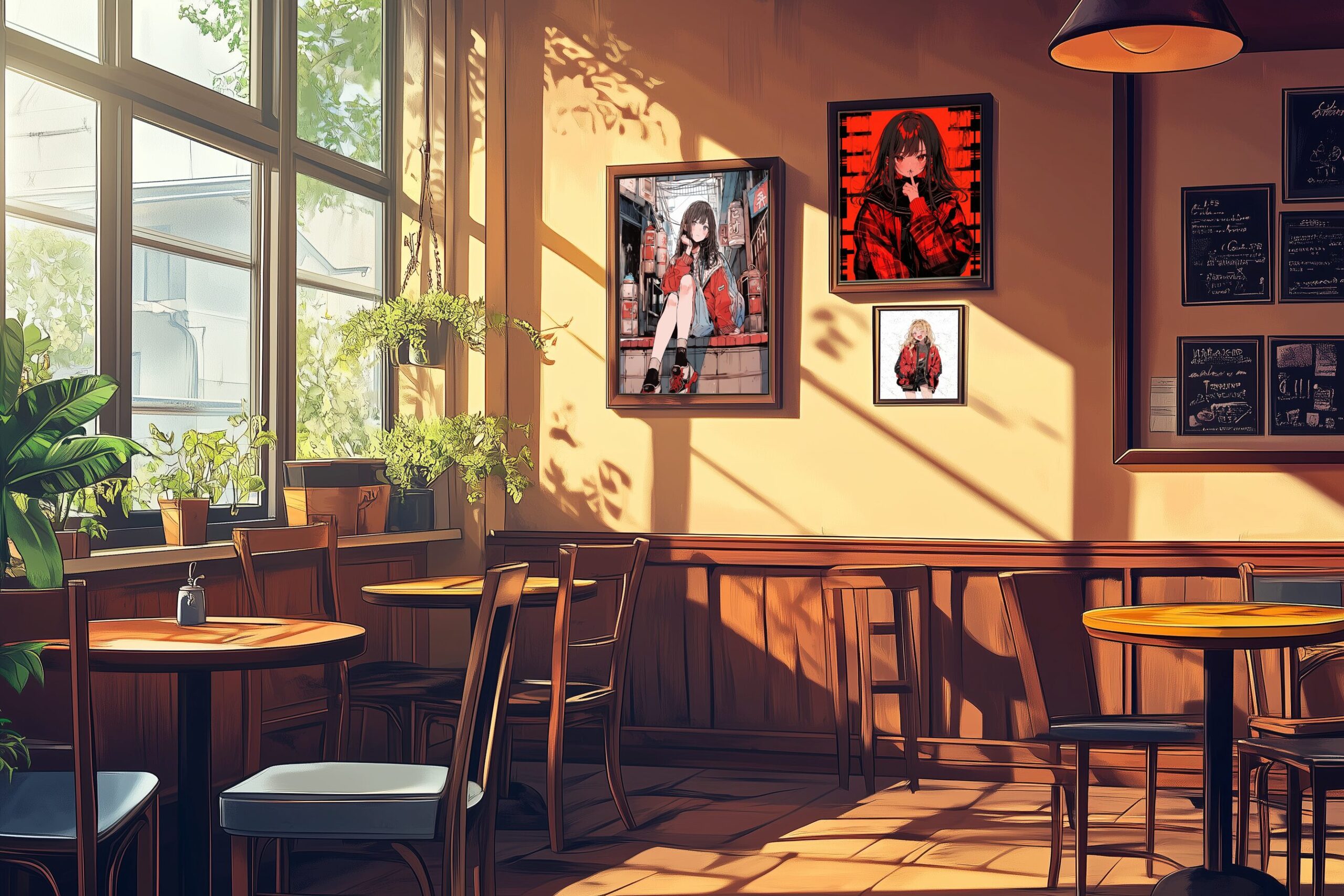 検索タグ:カフェ、インテリア、cafe、interior、店内、飲食店、オシャレ、お洒落、おしゃれ、フリー素材、フリー画像、、free、image、materials、AI生成画像、内装、内観、室内、店舗、お店、モダン、壁紙、ZOOM背景、配信用、背景素材、アイキャッチ、サムネイル、アニメアート、animeart、キャラクター、かわいい
