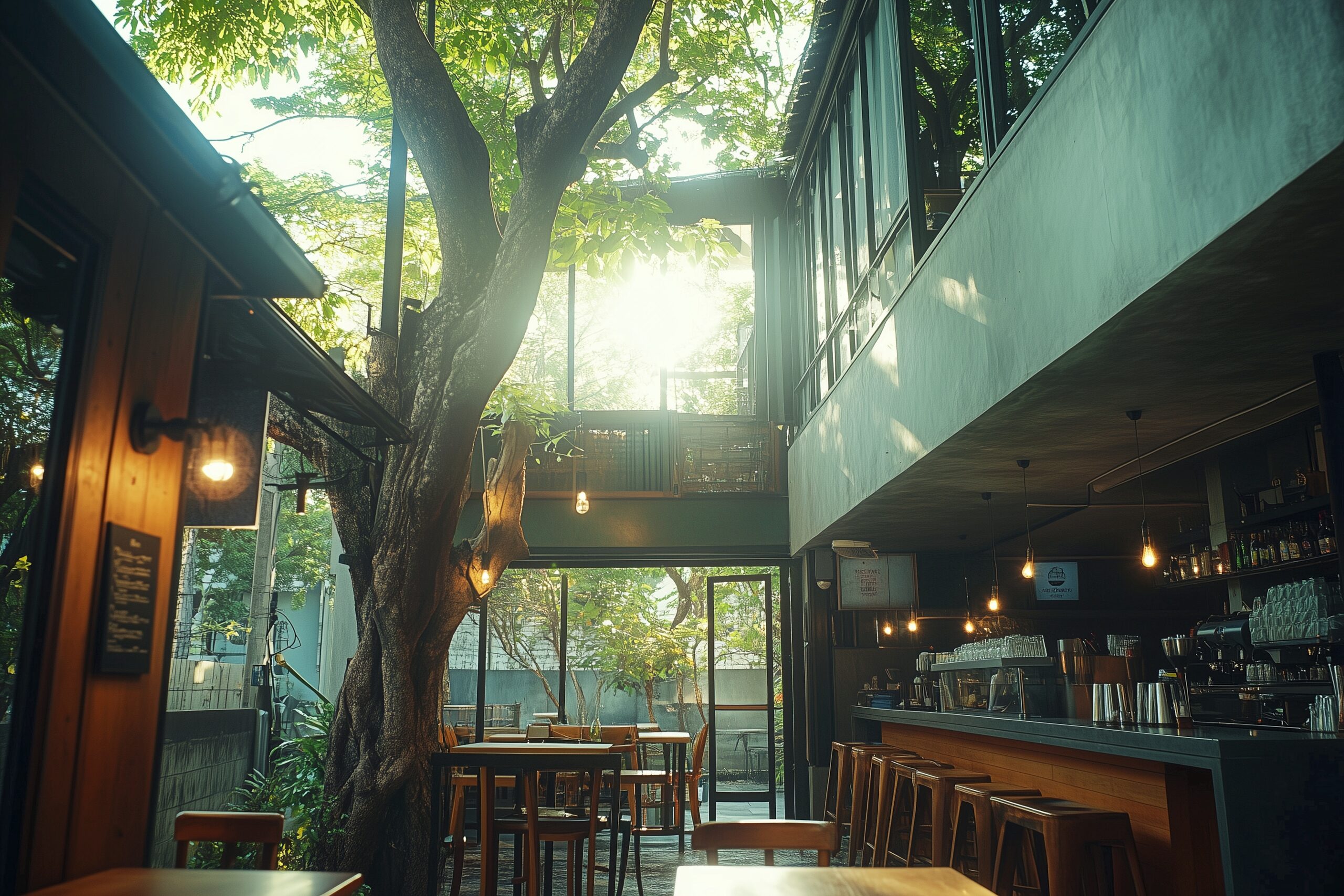 検索タグ:カフェ、インテリア、cafe、interior、店内、飲食店、オシャレ、お洒落、おしゃれ、フリー素材、フリー画像、AI生成画像、内装、内観、室内、店舗、お店、モダン、壁紙、ZOOM背景、配信用、背景素材、アイキャッチ、サムネイル、喫茶店、レトロ、田舎、エモい、エモーション、エモーショナル、かっこいい