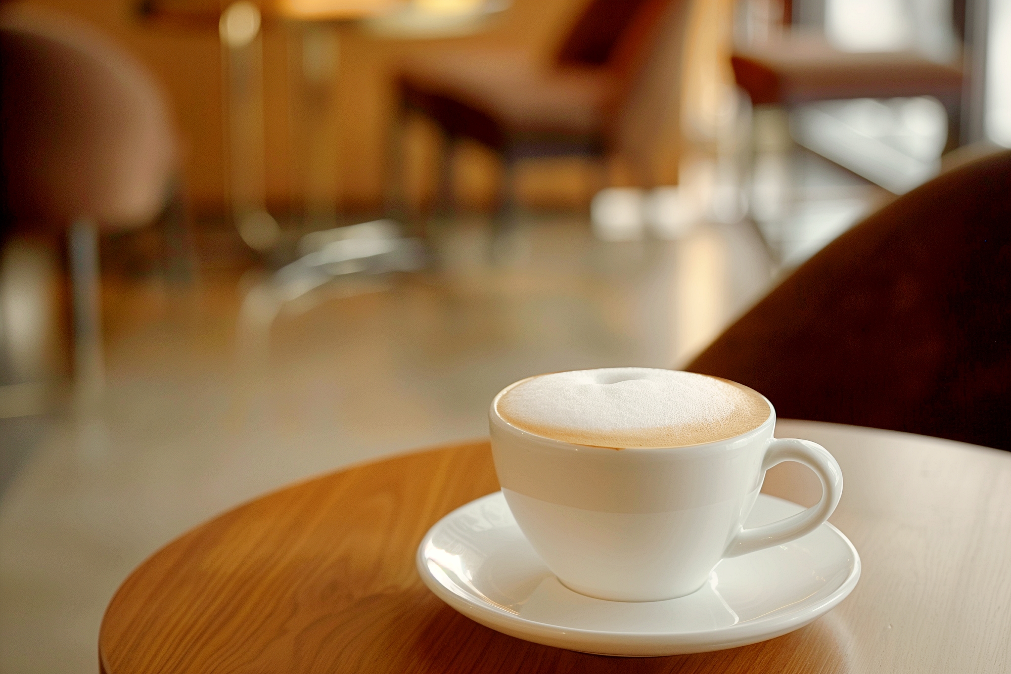 検索タグ:カフェ、インテリア、cafe、interior、店内、飲食店、オシャレ、お洒落、おしゃれ、木のテーブル、ホットコーヒー、フリー素材、フリー画像、AI生成画像、カフェラテ、モーニング、コピースペース、テキストスペース、背景、壁紙、珈琲、シンプル、カフェオレ、カプチーノ、泡、あわ、ラテアート、カフェオレ
