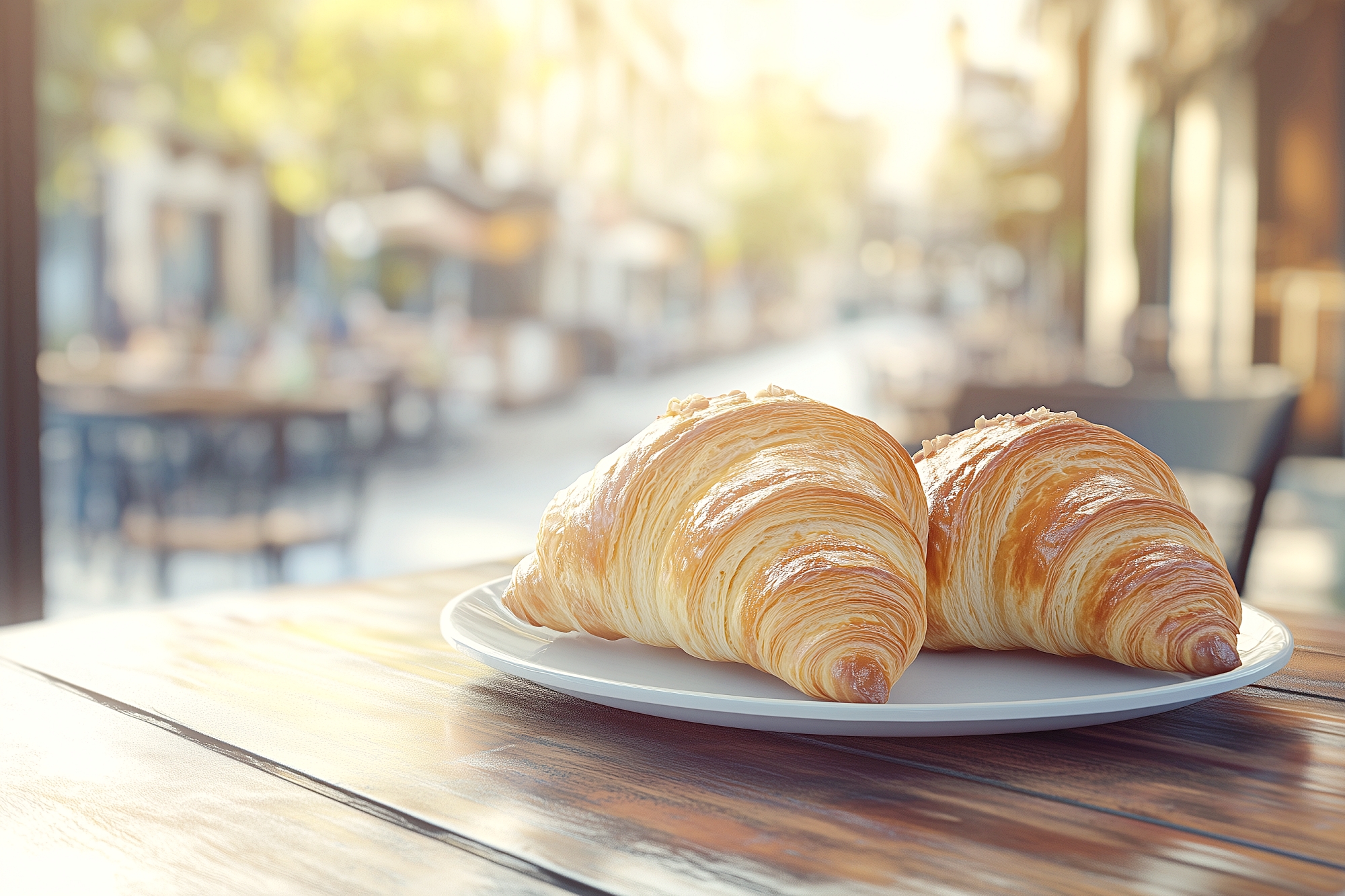 検索タグ:カフェ、cafe、オシャレ、お洒落、おしゃれ、フリー素材、フリー画像、AI生成画像、食べ物、食事、フード、食事、盛り付け、コピースペース、、背景、アイキャッチ、壁紙、パン、bread、焼き立て、パン屋さん、クロワッサン、croissant