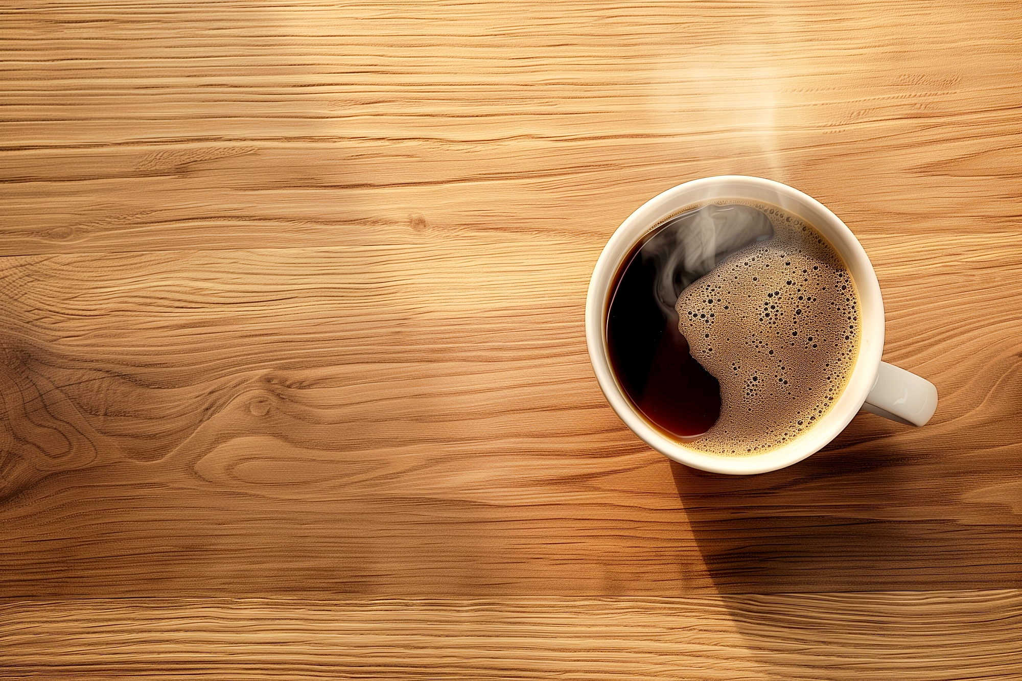 検索タグ:カフェ、インテリア、cafe、interior、店内、飲食店、オシャレ、お洒落、おしゃれ、木のテーブル、ホットコーヒー、フリー素材、フリー画像、AI生成画像、カフェラテ、モーニング、コピースペース、テキストスペース、ブラックコーヒー、背景、壁紙、珈琲、シンプル