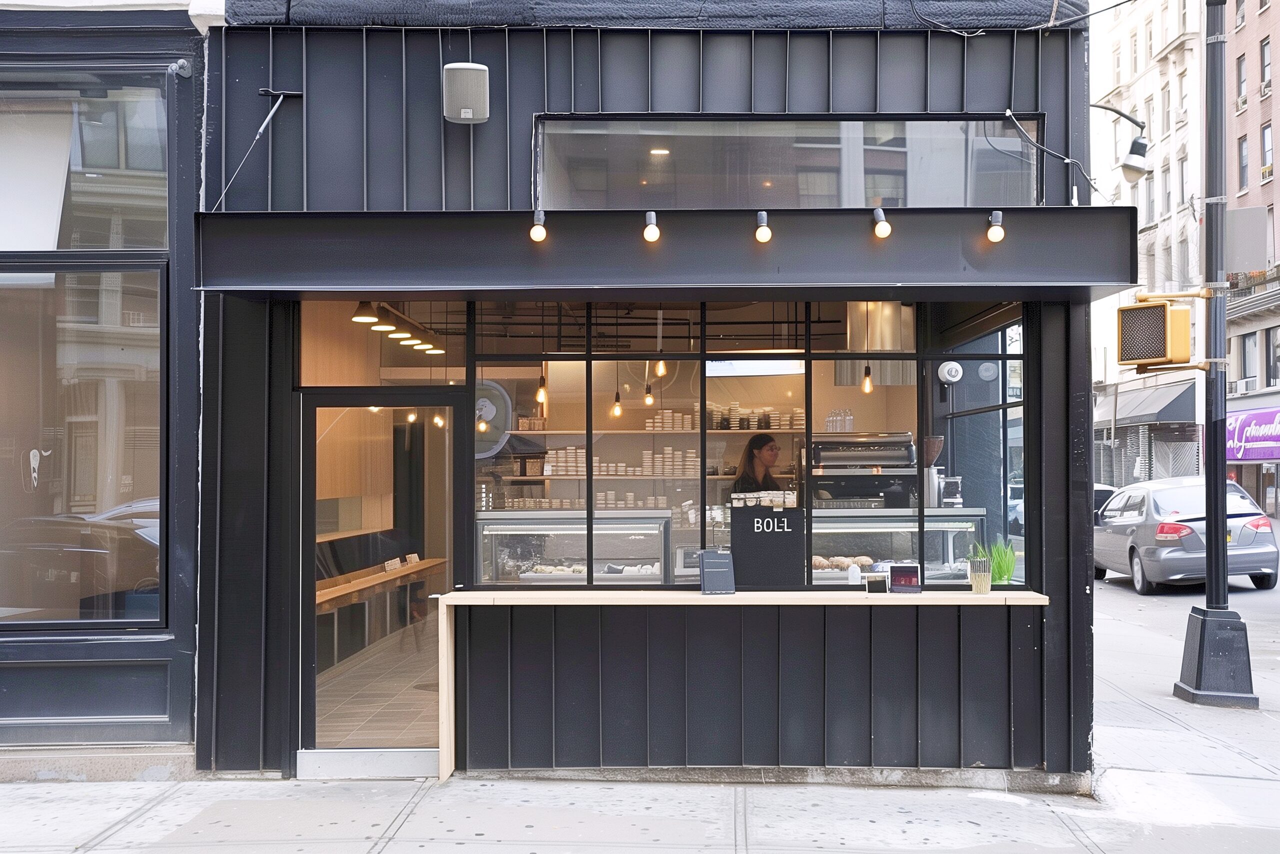 検索タグ:カフェ、cafe、飲食店、オシャレ、お洒落、おしゃれ、外観、建物、建築、黒、ブラック、BLACK、フリー素材、フリー画像、AI生成画像