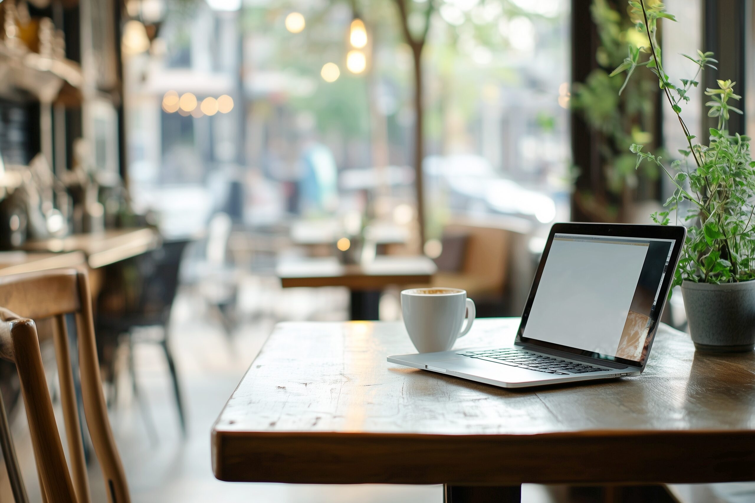 検索タグ:カフェ、インテリア、cafe、interior、店内、飲食店、オシャレ、お洒落、おしゃれ、木のテーブル、ホットコーヒー、フリー素材、フリー画像、AI生成画像、カフェラテ、モーニング、コピースペース、テキストスペース、ブラックコーヒー、背景、壁紙、珈琲、シンプル、カフェテラス、テラス、仕事、ノートパソコン、pc、フリーランス、デスクワーク