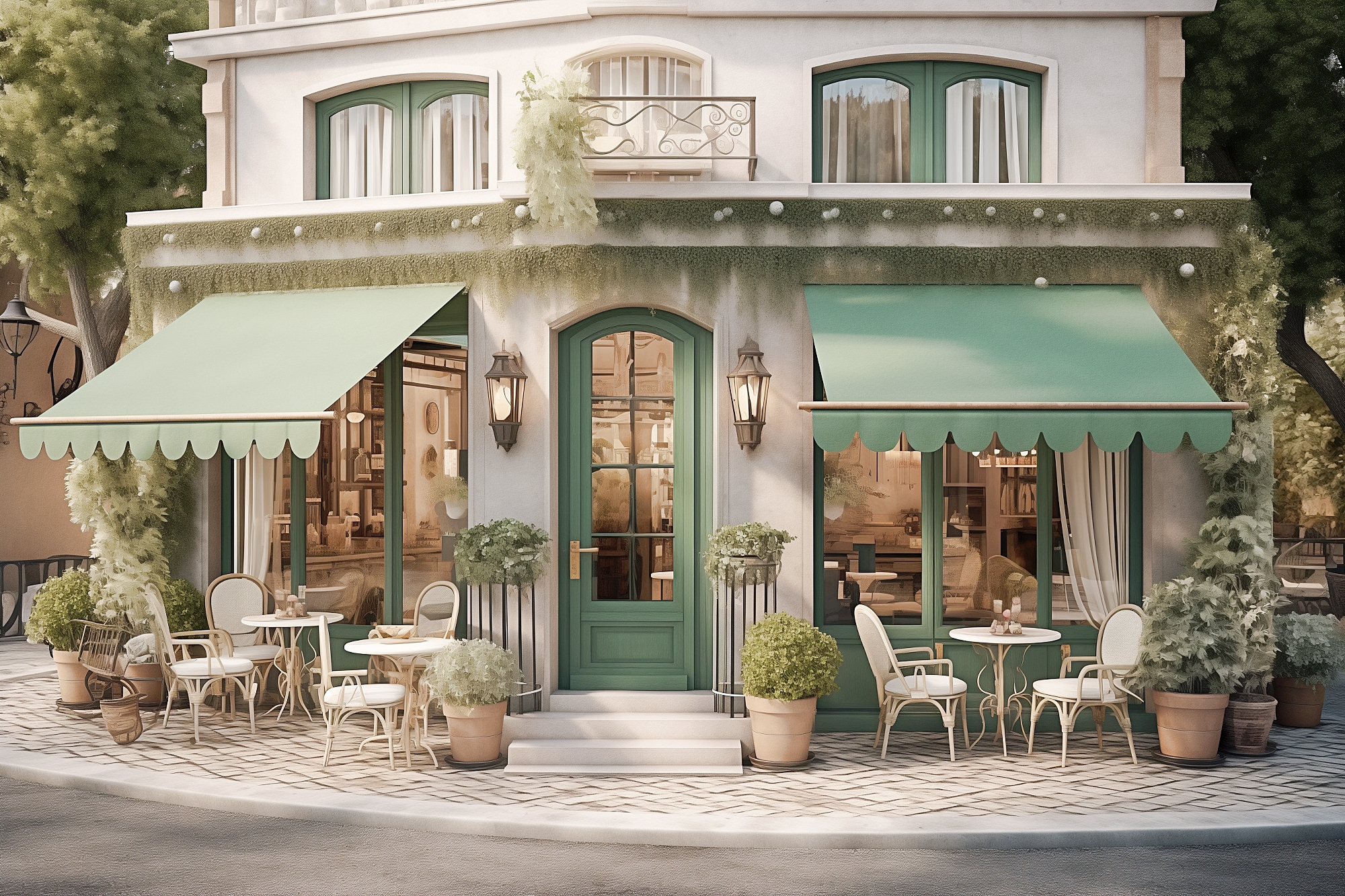 検索タグ:カフェ、cafe、飲食店、オシャレ、お洒落、おしゃれ、外観、建物、建築、お店、店舗、フリー素材、フリー画像、AI生成画像、レトロ感、海外、ヨーロッパ風、テラス席、小さなカフェ、デザイン、画像、外装、無料画像、前景、カフェショップフロント、テラス
