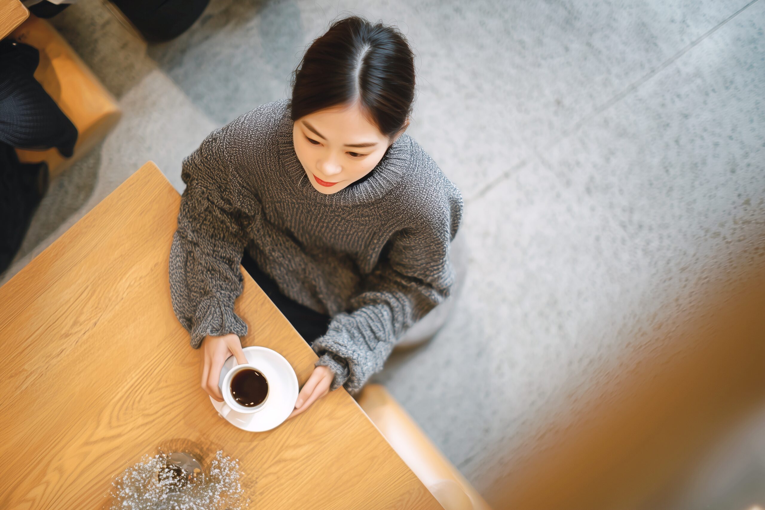 検索タグ:カフェ、cafe、飲食店、オシャレ、お洒落、おしゃれ、お店、店舗、フリー素材、フリー画像、AI生成画像、喫茶店、free image、インテリア、innteria、内装、内観、人物、女性、女の人、女の子、女、主婦、コーヒーを飲む、休日、ニットを着た女性、秋服、冬服、まとめ髪、休暇、余暇