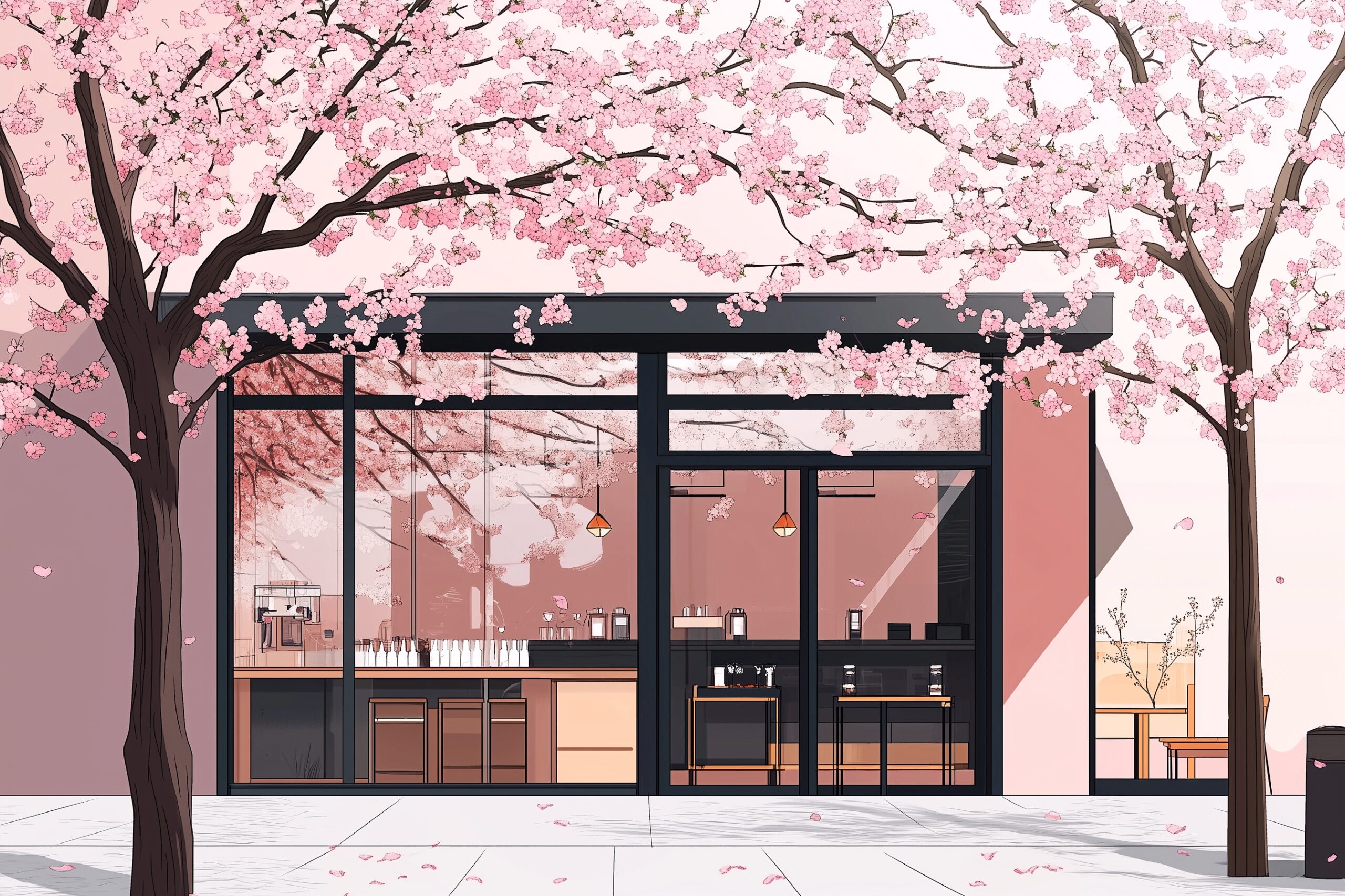 検索タグ:カフェ、cafe、飲食店、オシャレ、お洒落、おしゃれ、外観、建物、建築、お店、店舗、フリー素材、フリー画像、AI生成画像、モダン、飲食店、店、free、materials、image、shop、古民家、古い建物、レトロ、rétro、モダン、外装、桜、さくら、サクラ、春、Spring、SAKURA