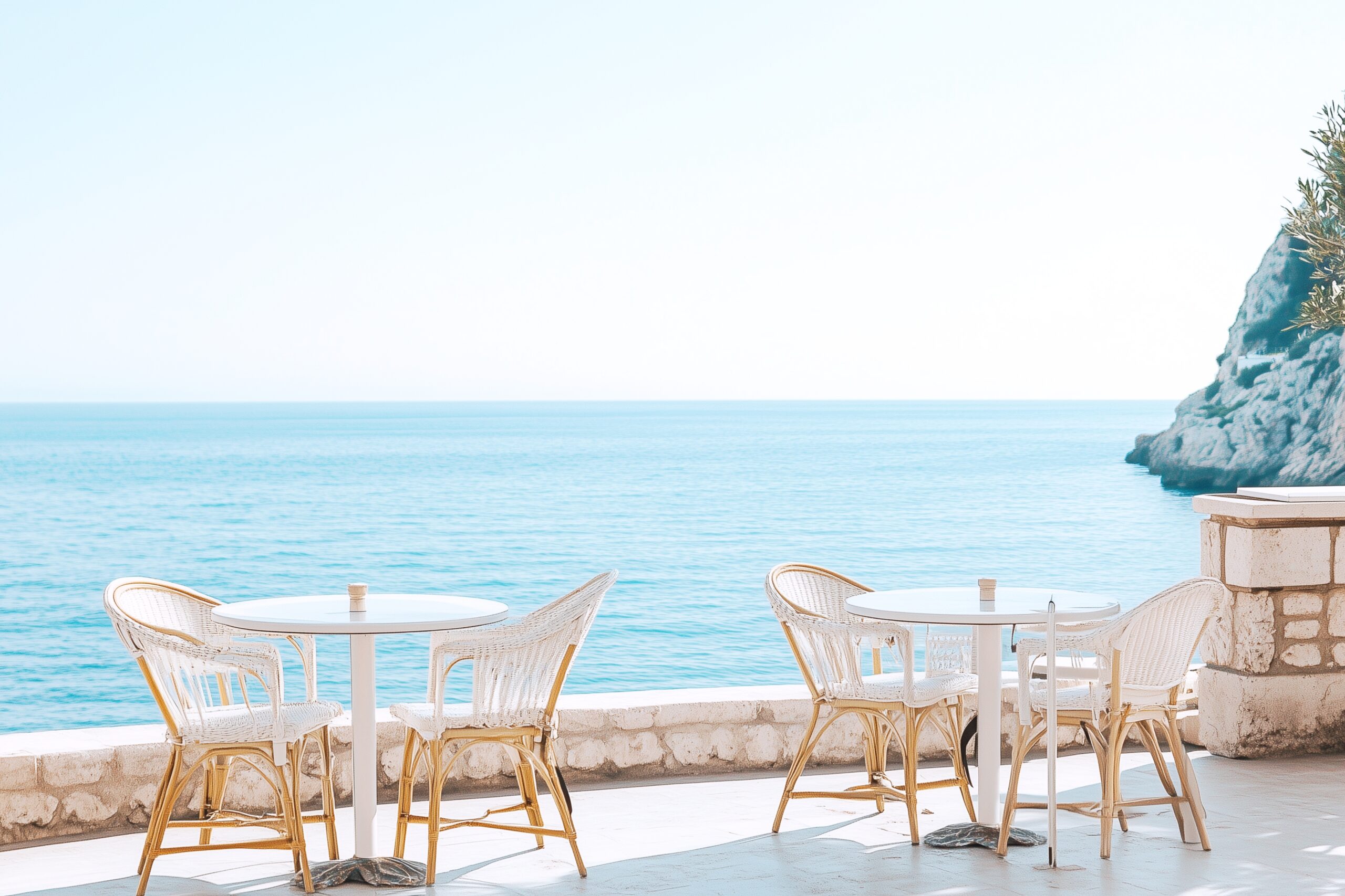 検索タグ:カフェ、cafe、オシャレ、お洒落、おしゃれ、フリー素材、フリー画像、AI生成画像、コピースペース、背景、アイキャッチ、カフェテラス、テラス、雰囲気、アウトドア、terrace、freeimage、海、海沿い、海辺、リゾート地