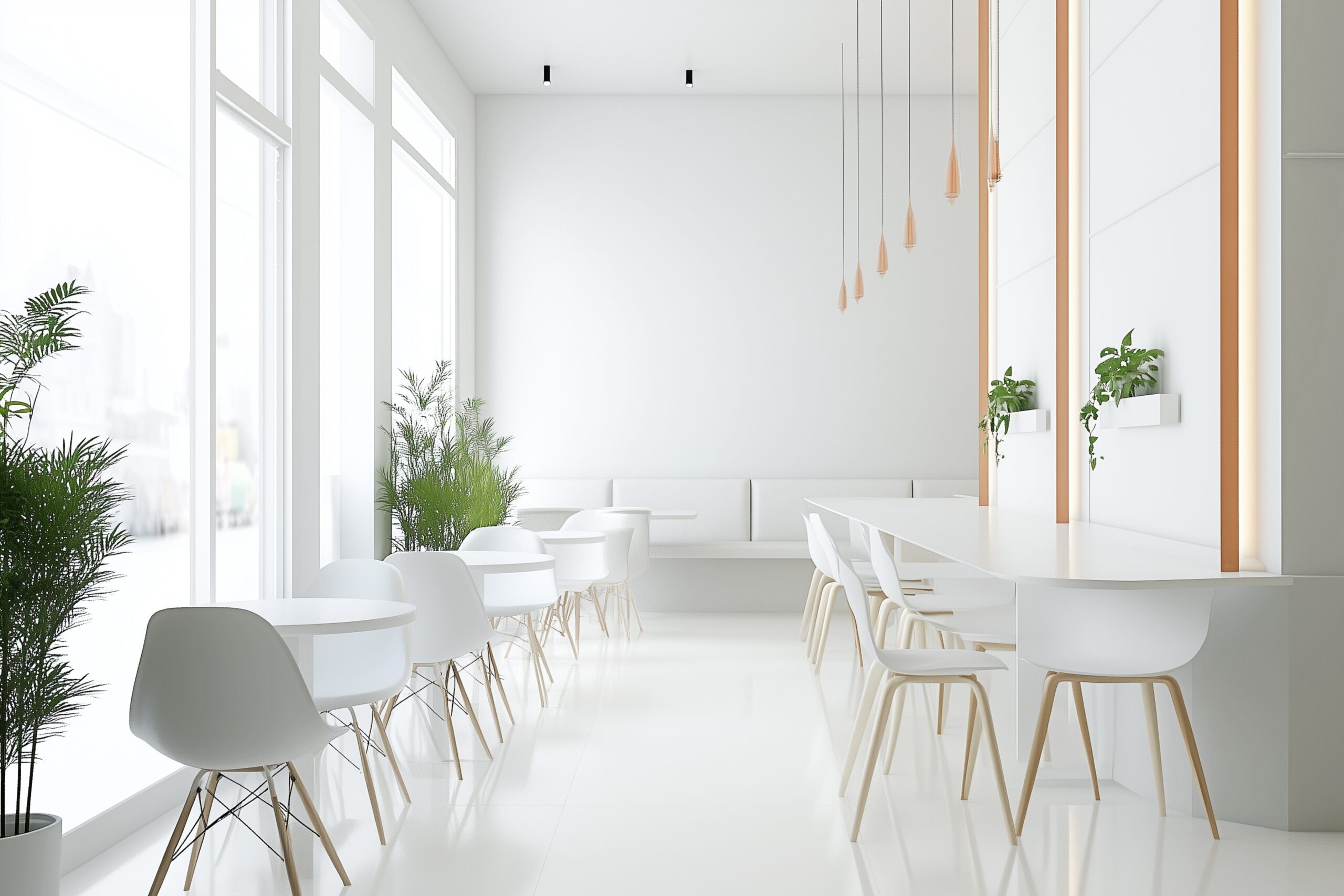 検索タグ:カフェ、インテリア、cafe、interior、店内、飲食店、オシャレ、お洒落、おしゃれ、フリー素材、フリー画像、AI生成画像、内装、内観、室内、店舗、お店、モダン、壁紙、ZOOM背景、配信用、背景素材、アイキャッチ、サムネイル、喫茶店、ナチュラル、素朴、テーブル、白、清潔感、ホワイト