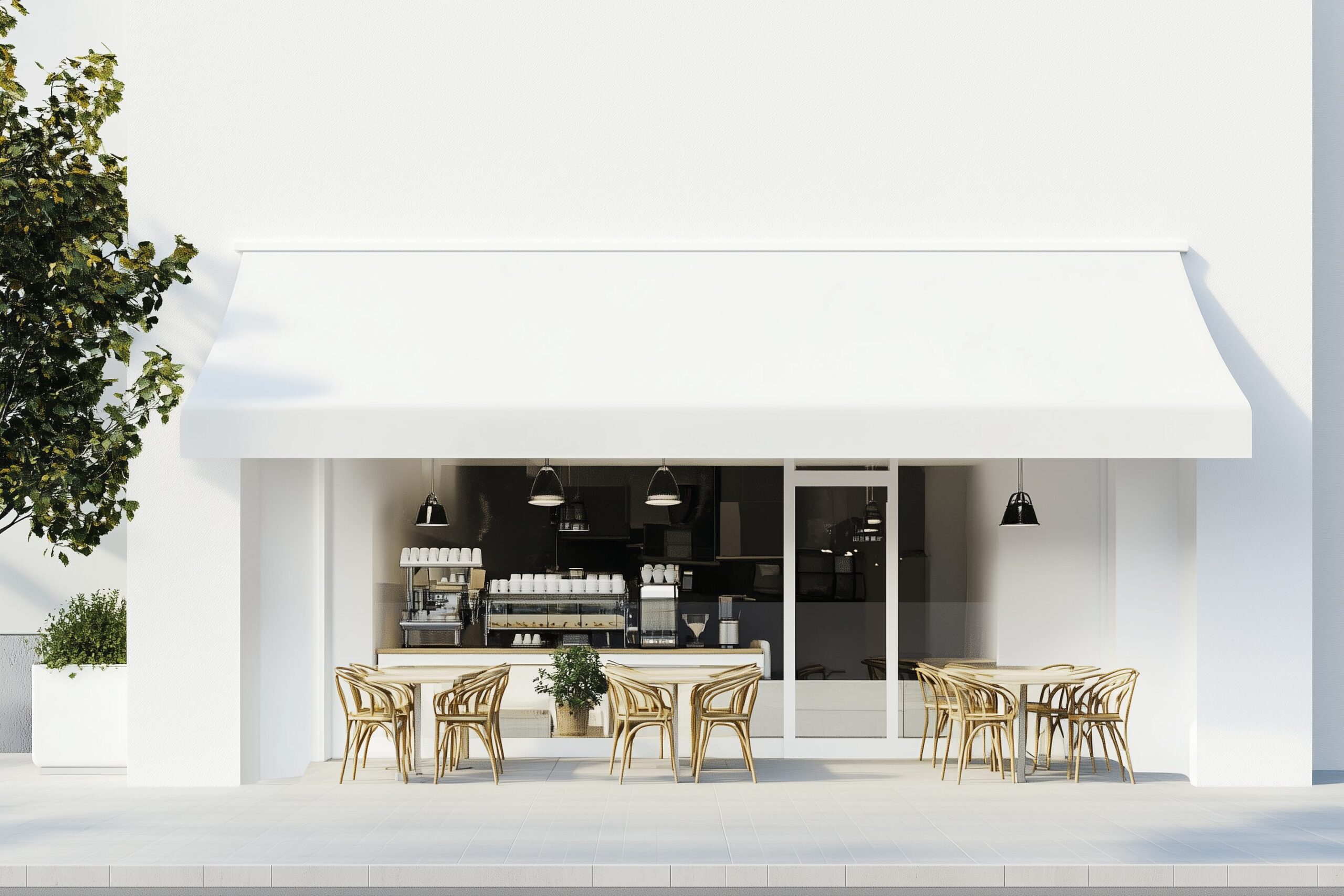 検索タグ:カフェ、cafe、飲食店、オシャレ、お洒落、おしゃれ、外観、建物、建築、お店、店舗、フリー素材、フリー画像、AI生成画像、レトロ感、海外風、小さなカフェ、デザイン、画像、外装、無料画像、前景、カフェショップフロント、イメージ、白、ホワイト、真っ白、テラス