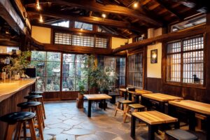検索タグ:カフェ、インテリア、cafe、interior、店内、飲食店、オシャレ、お洒落、おしゃれ、フリー素材、フリー画像、AI生成画像、内装、内観、室内、店舗、お店、モダン、壁紙、ZOOM背景、配信用、背景素材、アイキャッチ、サムネイル、喫茶店、木、木製、ウッド調、ナチュラル、素朴、テーブル