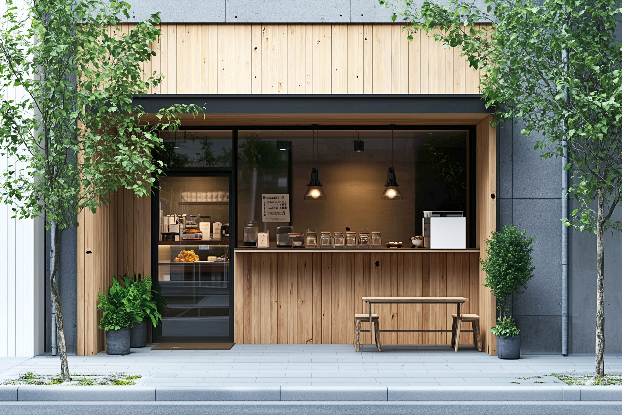 検索タグ:カフェ、cafe、オシャレ、お洒落、おしゃれ、フリー素材、フリー画像、AI生成画像、コピースペース、、背景、アイキャッチ、壁紙、雰囲気、外観、外装、外、建物、小さい、都会、街角