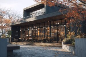 検索タグ:カフェ、cafe、飲食店、オシャレ、お洒落、おしゃれ、外観、建物、建築、お店、店舗、フリー素材、フリー画像、AI生成画像、モダン、飲食店、店、free、materials、image、shop、古民家、古い建物、レトロ、rétro、モダン、外装、古い