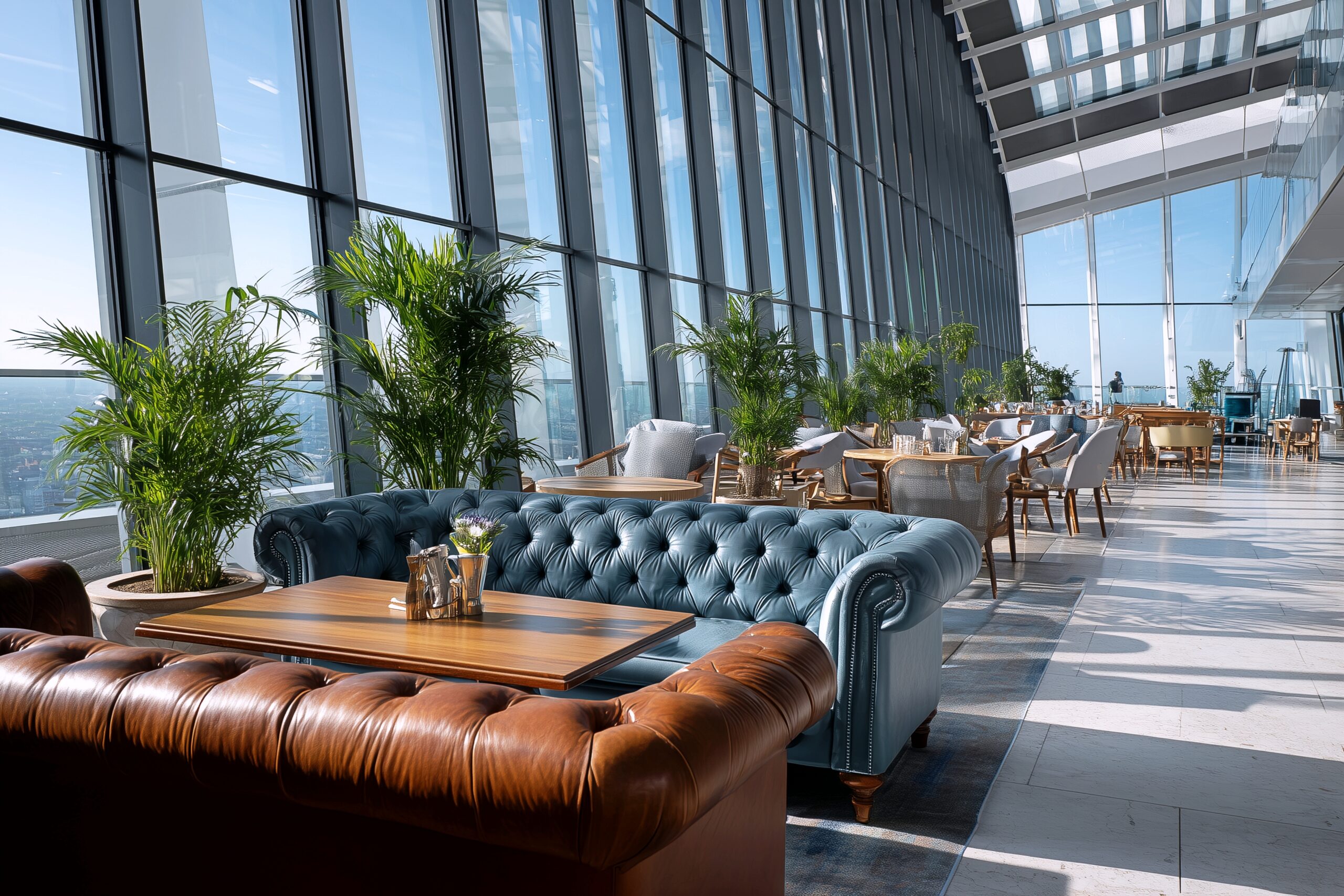 高層階の開放的なカフェのソファ席・インテリアフリー素材01