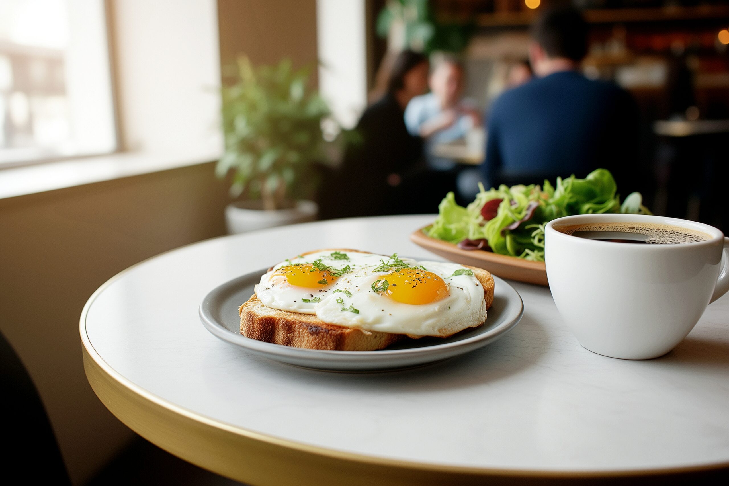 検索タグ:カフェ、cafe、店内、飲食店、オシャレ、お洒落、おしゃれ、テーブル、フリー素材、フリー画像、AI生成画像、ランチ、お昼ごはん、昼ご飯、食べ物、食事、フード、喫茶店、メニュー、モーニング、朝食、朝ごはん、朝ご飯、グルメ、カフェメニュー、カフェご飯、カフェごはん、morning、ホットコーヒー、ブラックコーヒー、hot coffee、珈琲、料理、目玉焼きトースト、食パン、朝メシ、朝飯、朝めし、サラダ