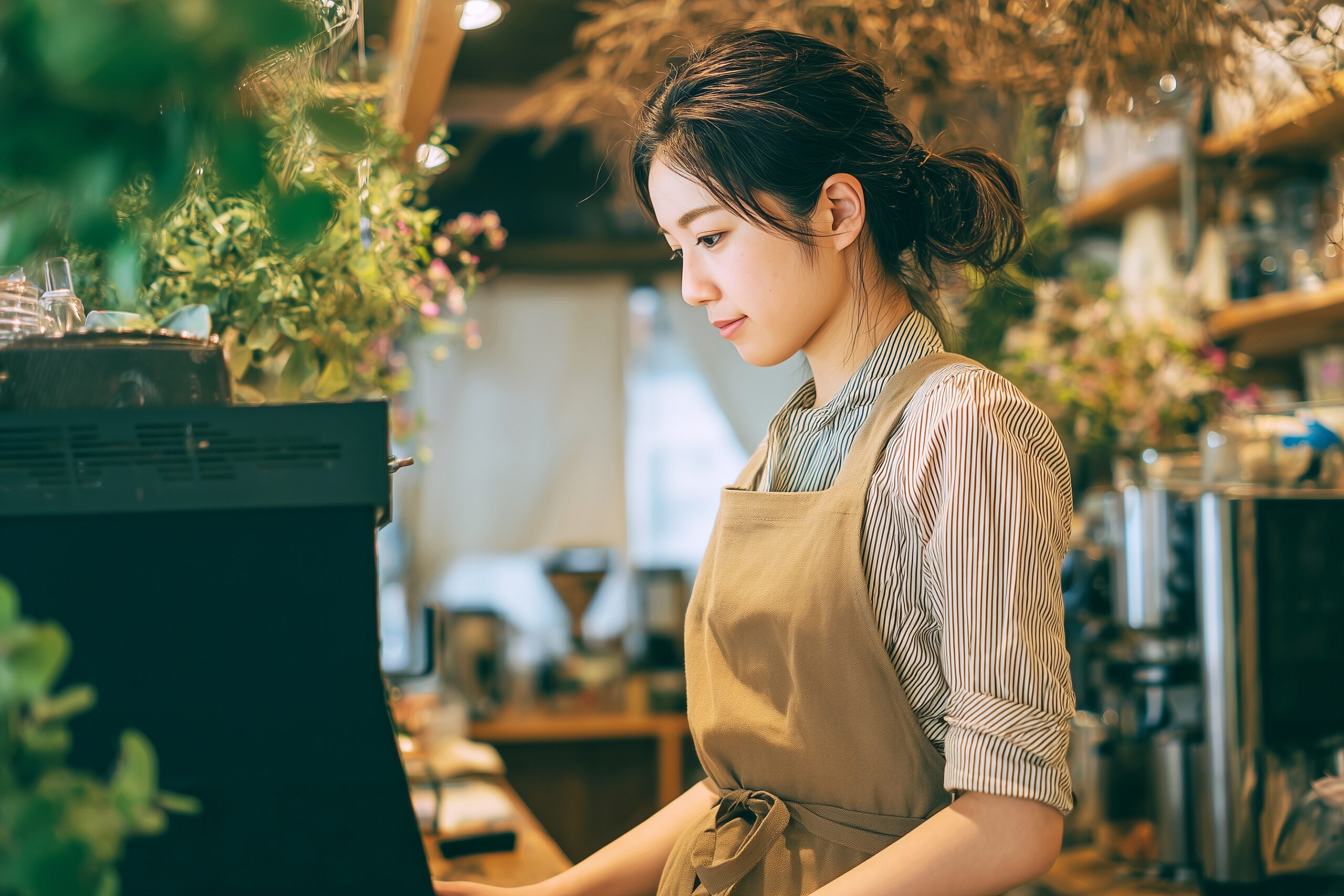検索タグ:カフェ、cafe、飲食店、オシャレ、お洒落、おしゃれ、お店、店舗、フリー素材、フリー画像、AI生成画像、喫茶店、free image、インテリア、innteria、内装、内観、人物、後ろ姿、カフェカウンター、アルバイト、店員、スタッフ、パート、レジ、バイト、女性、女の人、女の子、女、主婦、ワーキングウーマン、バリスタ