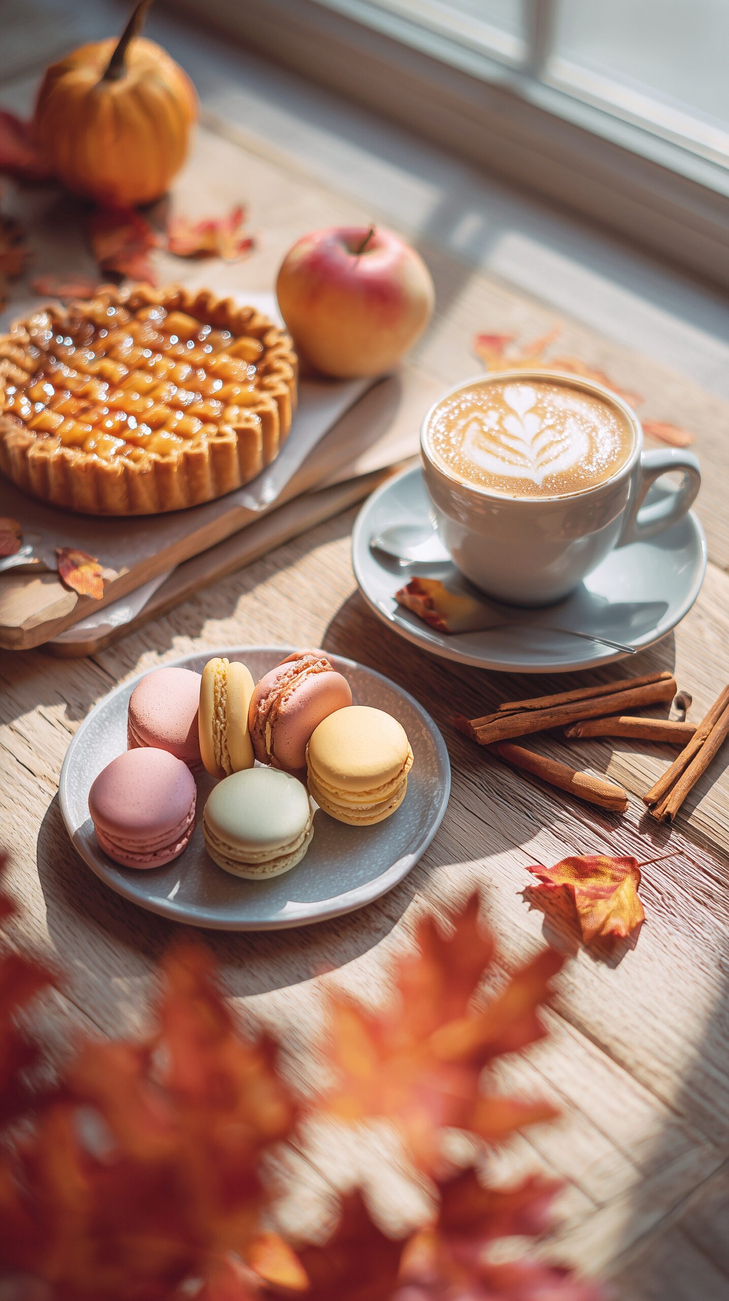 【スマホ壁紙】可愛いマカロンと秋のカフェスイーツ&ラテアート・フリー素材04