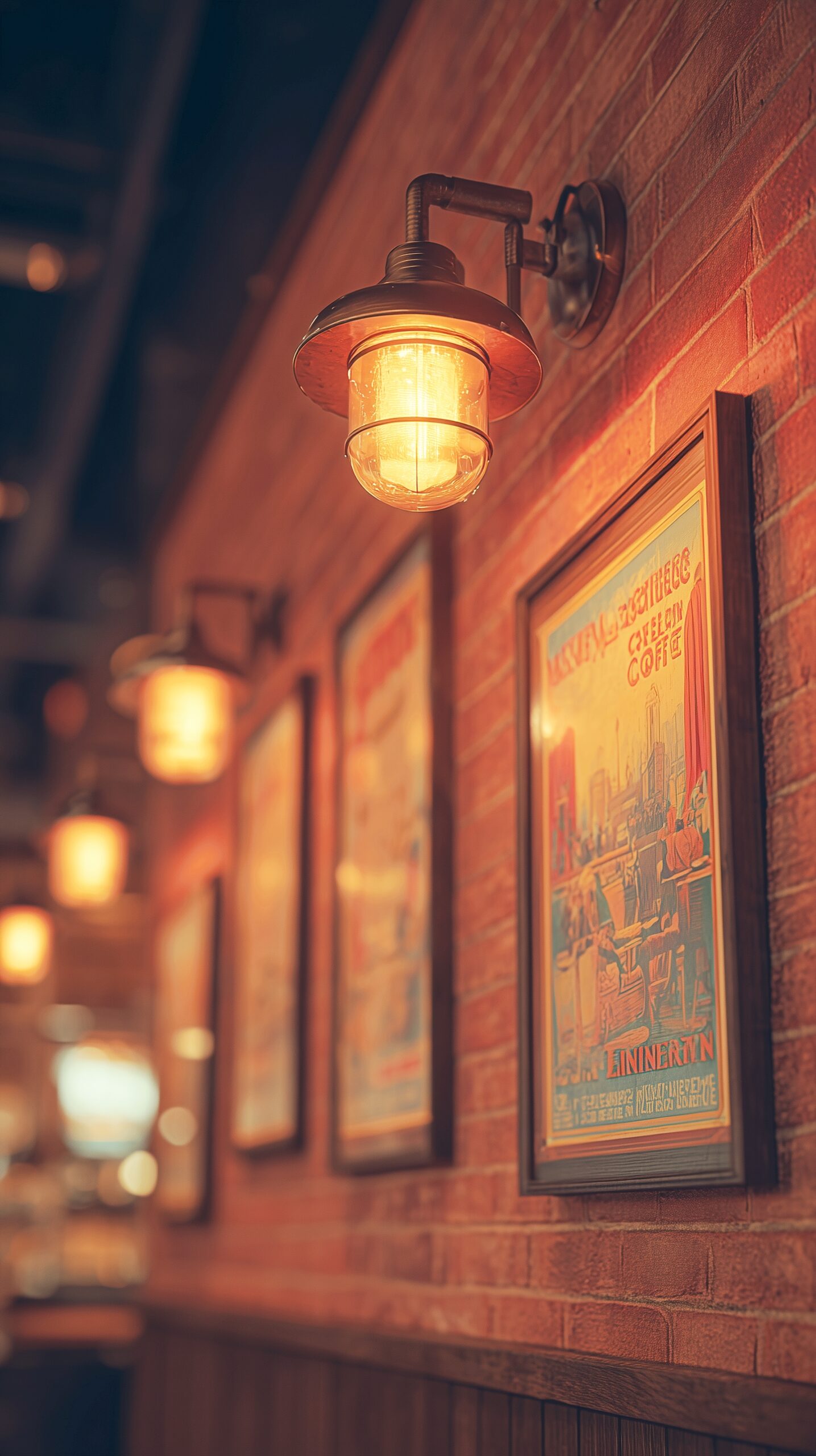 【スマホ壁紙】昭和レトロなカフェインテリアと照明・フリー素材02