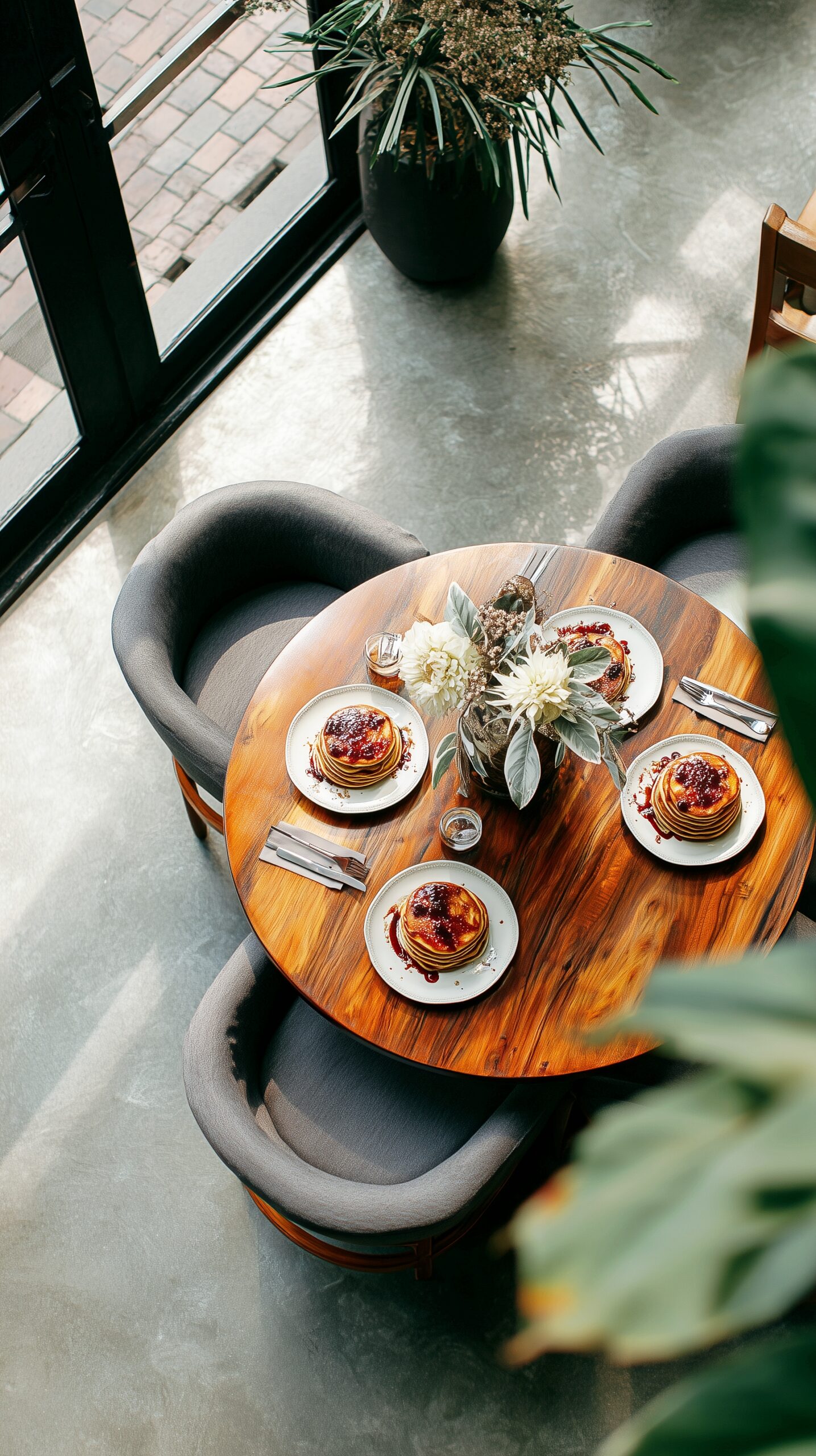 【スマホ壁紙サイズ】オシャレなカフェ空間・パンケーキとスイーツのフリー素材02