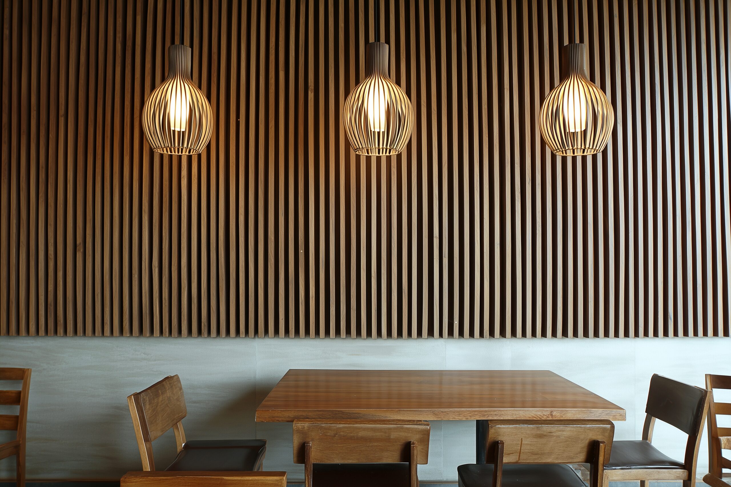 【フリー素材】カフェのおしゃれなウッドデザインの壁・テーブル席02