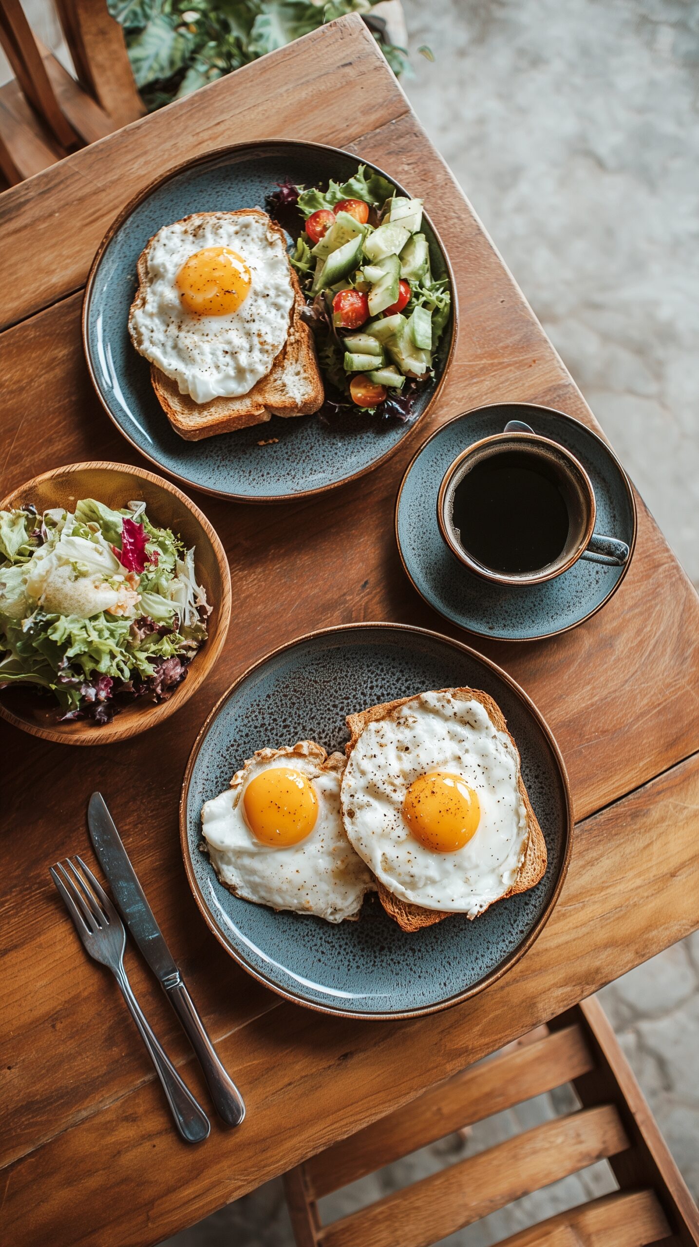 検索タグ:カフェ、cafe、店内、飲食店、オシャレ、お洒落、おしゃれ、テーブル、フリー素材、フリー画像、AI生成画像、ランチ、お昼ごはん、昼ご飯、食べ物、食事、フード、喫茶店、メニュー、モーニング、朝食、朝ごはん、朝ご飯、グルメ、カフェメニュー、カフェご飯、カフェごはん、morning、ホットコーヒー、ブラックコーヒー、hot coffee、珈琲、料理、目玉焼きトースト、食パン、朝メシ、朝飯、朝めし、サラダ
