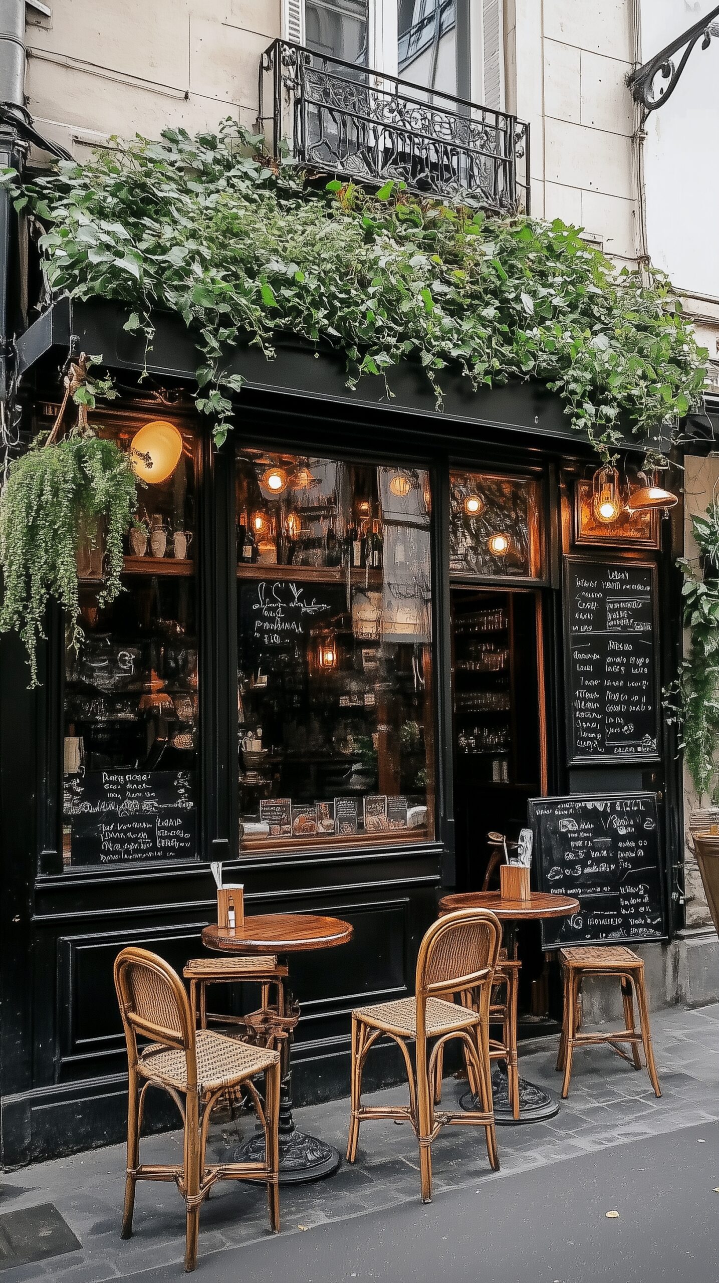 検索タグ:カフェ、cafe、飲食店、オシャレ、お洒落、おしゃれ、外観、建物、建築、お店、店舗、フリー素材、フリー画像、AI生成画像、壁紙サイズ、縦長画像、外装、ヨーロッパ風、海外風、テラス席