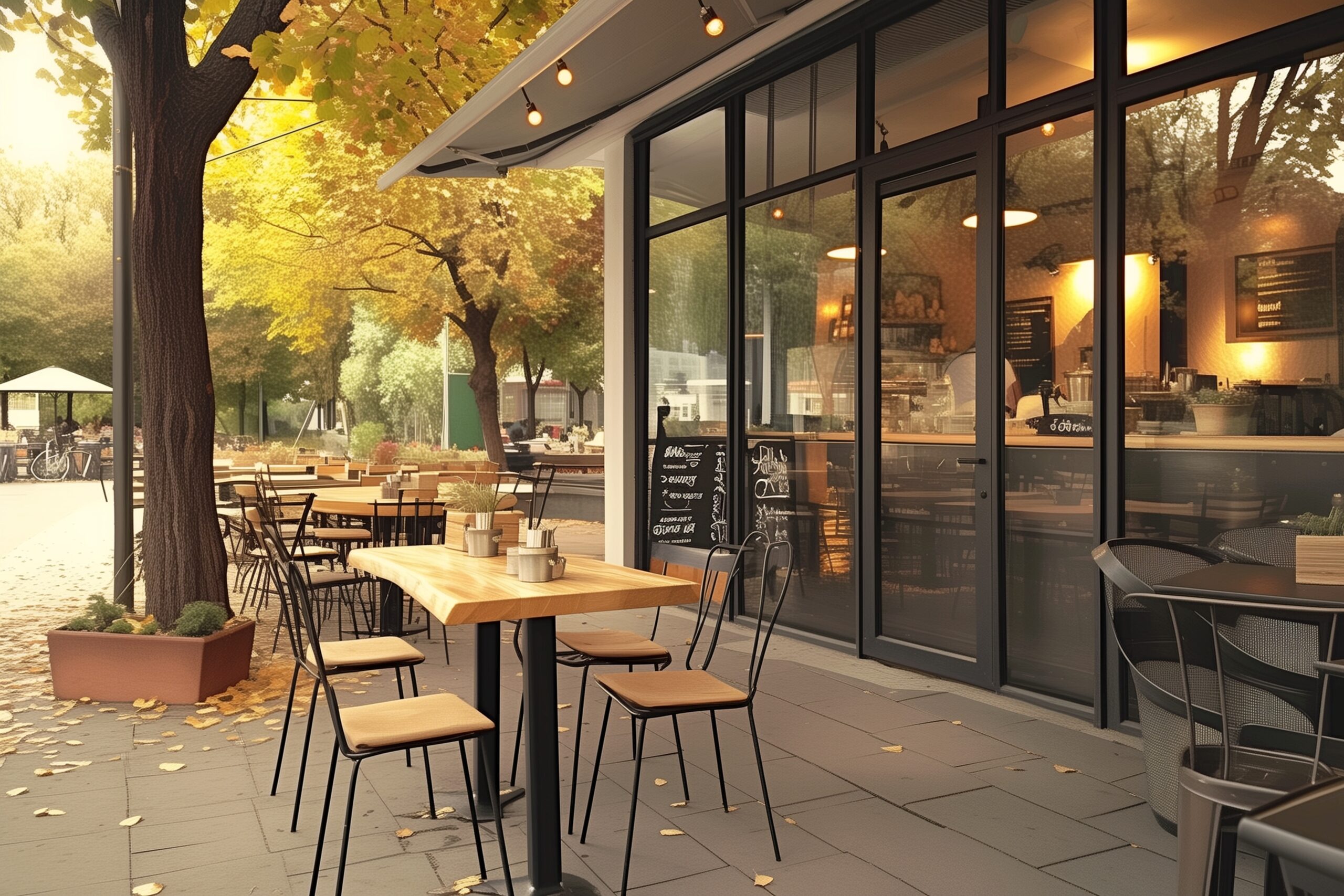 検索タグ:カフェ、cafe、飲食店、オシャレ、お洒落、おしゃれ、外観、建物、建築、お店、店舗、フリー素材、フリー画像、AI生成画像、外装、懐かしい雰囲気、喫茶店、秋、Autumn、オータム、モダン、季節、紅葉、季節、四季
