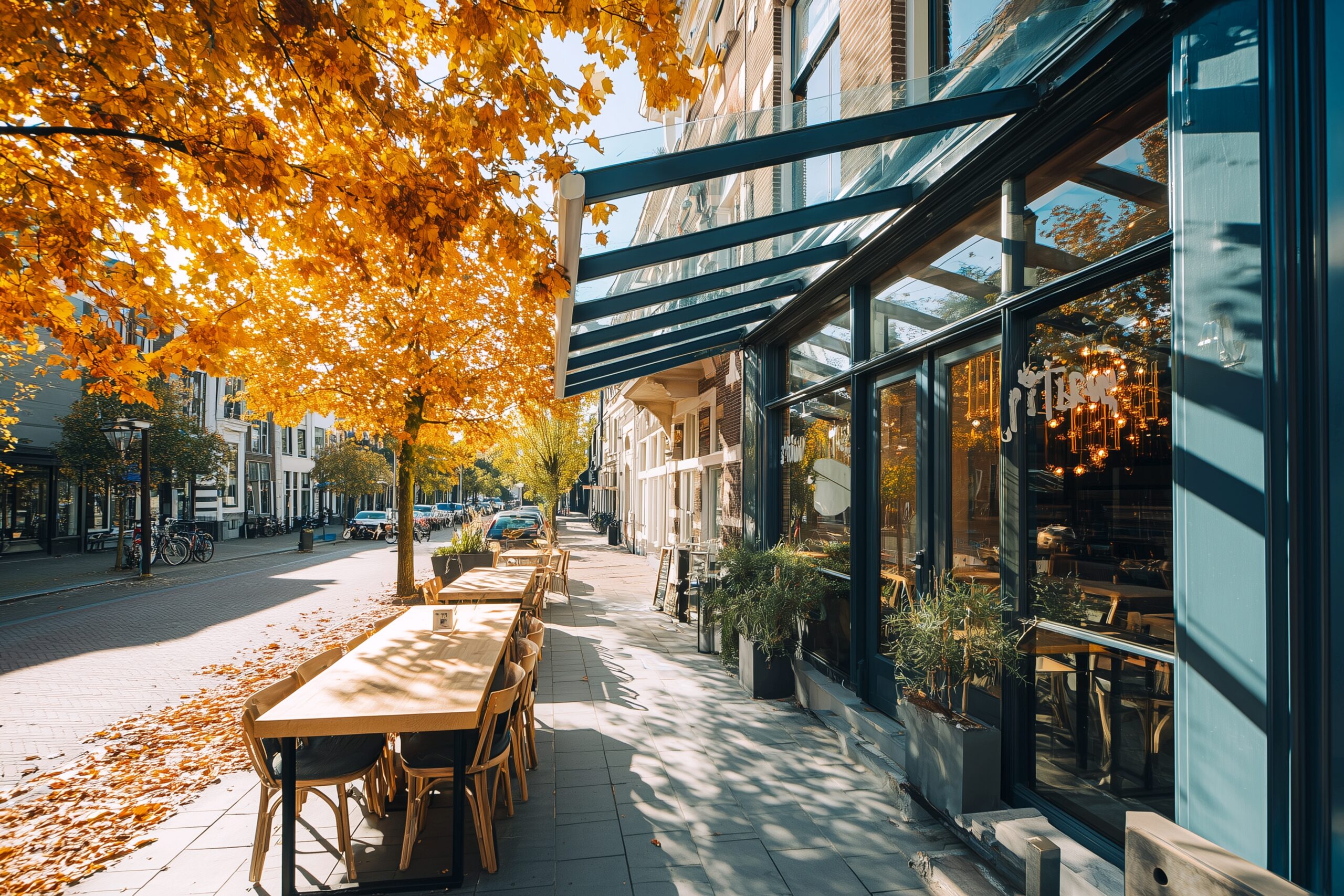 検索タグ:カフェ、cafe、飲食店、オシャレ、お洒落、おしゃれ、外観、建物、建築、お店、店舗、フリー素材、フリー画像、AI生成画像、外装、懐かしい雰囲気、喫茶店、秋、Autumn、オータム、モダン、季節、紅葉、季節、四季