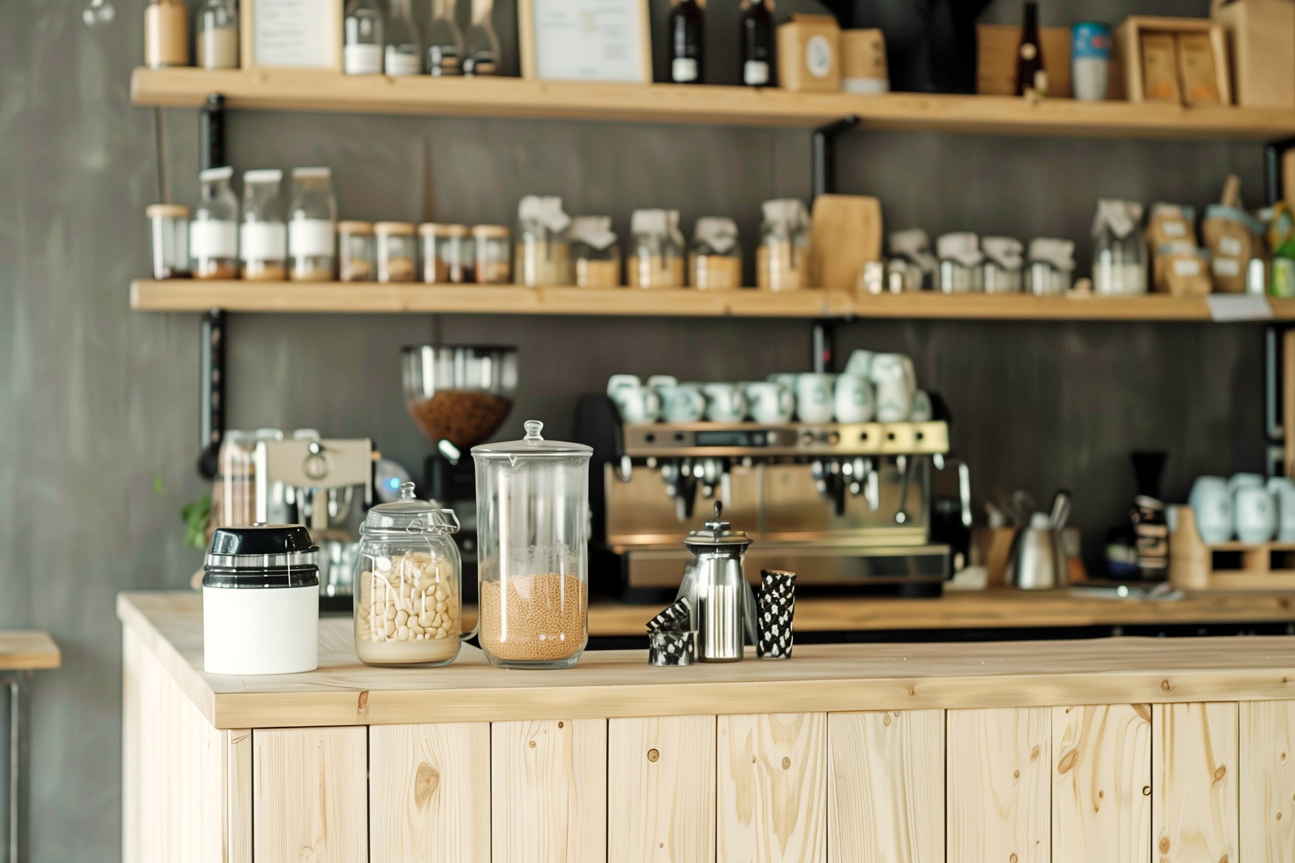 検索タグ:カフェ、cafe、飲食店、オシャレ、お洒落、おしゃれ、木のテーブル、フリー素材、フリー画像、AI生成画像、デザイン、カウンターテーブル、カウンター、装飾、DIY