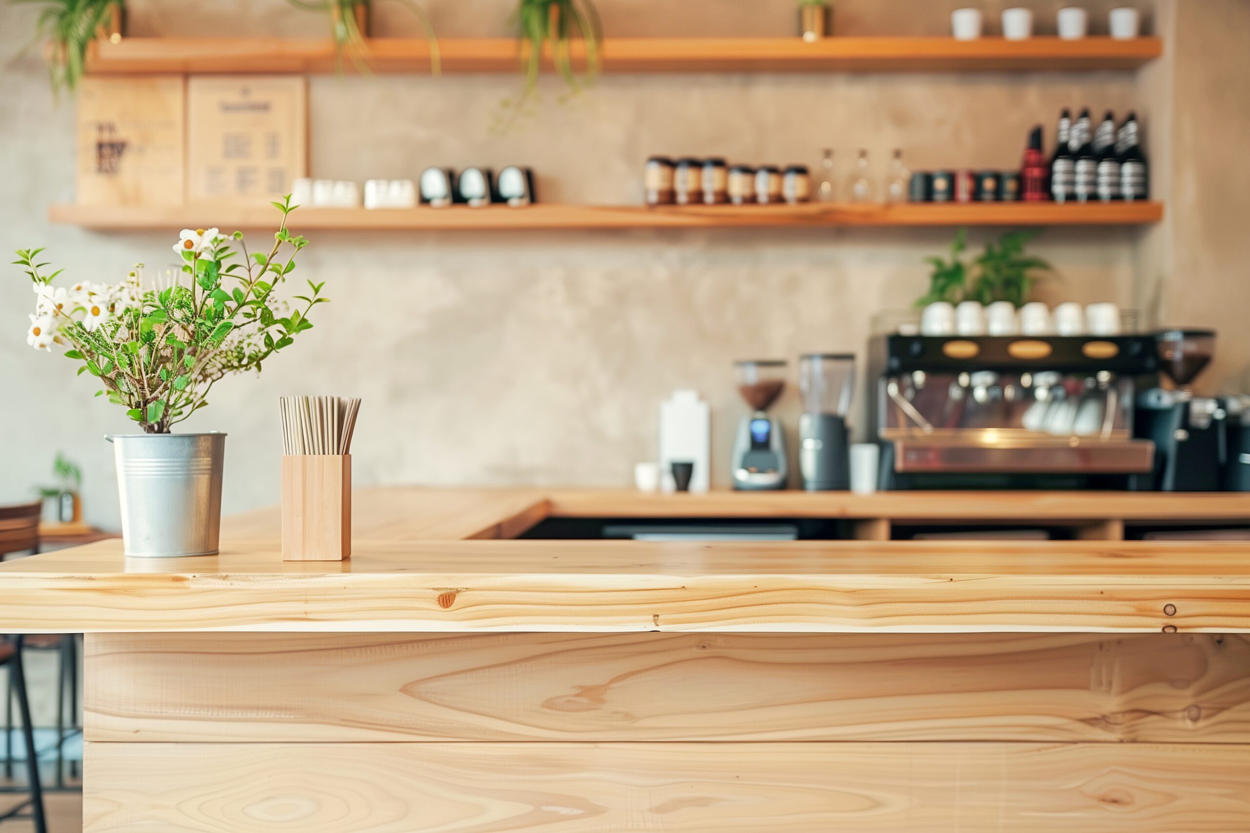 検索タグ:カフェ、cafe、飲食店、オシャレ、お洒落、おしゃれ、木のテーブル、フリー素材、フリー画像、AI生成画像、デザイン、カウンターテーブル、カウンター、装飾、DIY