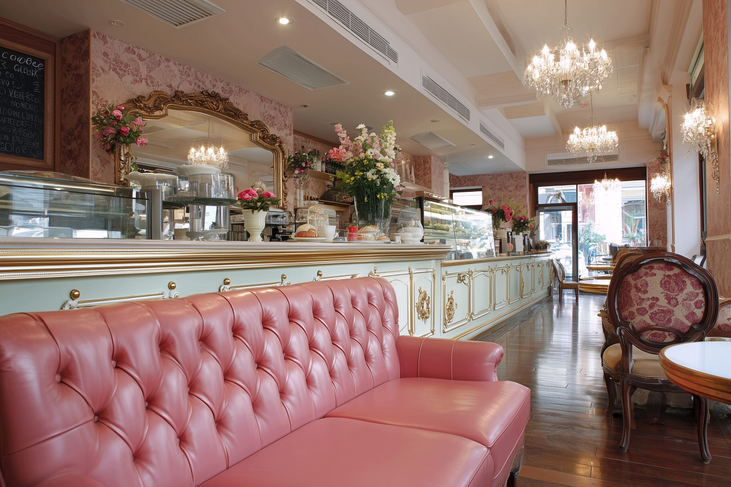 検索タグ:カフェ、インテリア、cafe、interior、店内、飲食店、オシャレ、お洒落、おしゃれ、フリー素材、フリー画像、AI生成画像、内装、内観、室内、店舗、お店、モダン、壁紙、ZOOM背景、配信用、背景素材、アイキャッチ、サムネイル、喫茶店、レトロ、高級感、ゴージャス、ラグジュアリー、ヨーロッパ風、海外風、イメージ画像、イメージ素材、Europe style