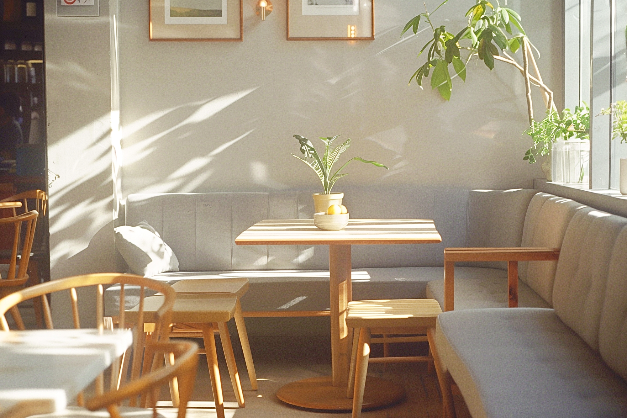 検索タグ:カフェ、インテリア、cafe、interior、店内、飲食店、オシャレ、お洒落、おしゃれ、フリー素材、フリー画像、AI生成画像、内装、内観、室内、店舗、お店、モダン、壁紙、ZOOM背景、配信用、背景素材、アイキャッチ、サムネイル、喫茶店、グレー、ソファ席、家具
