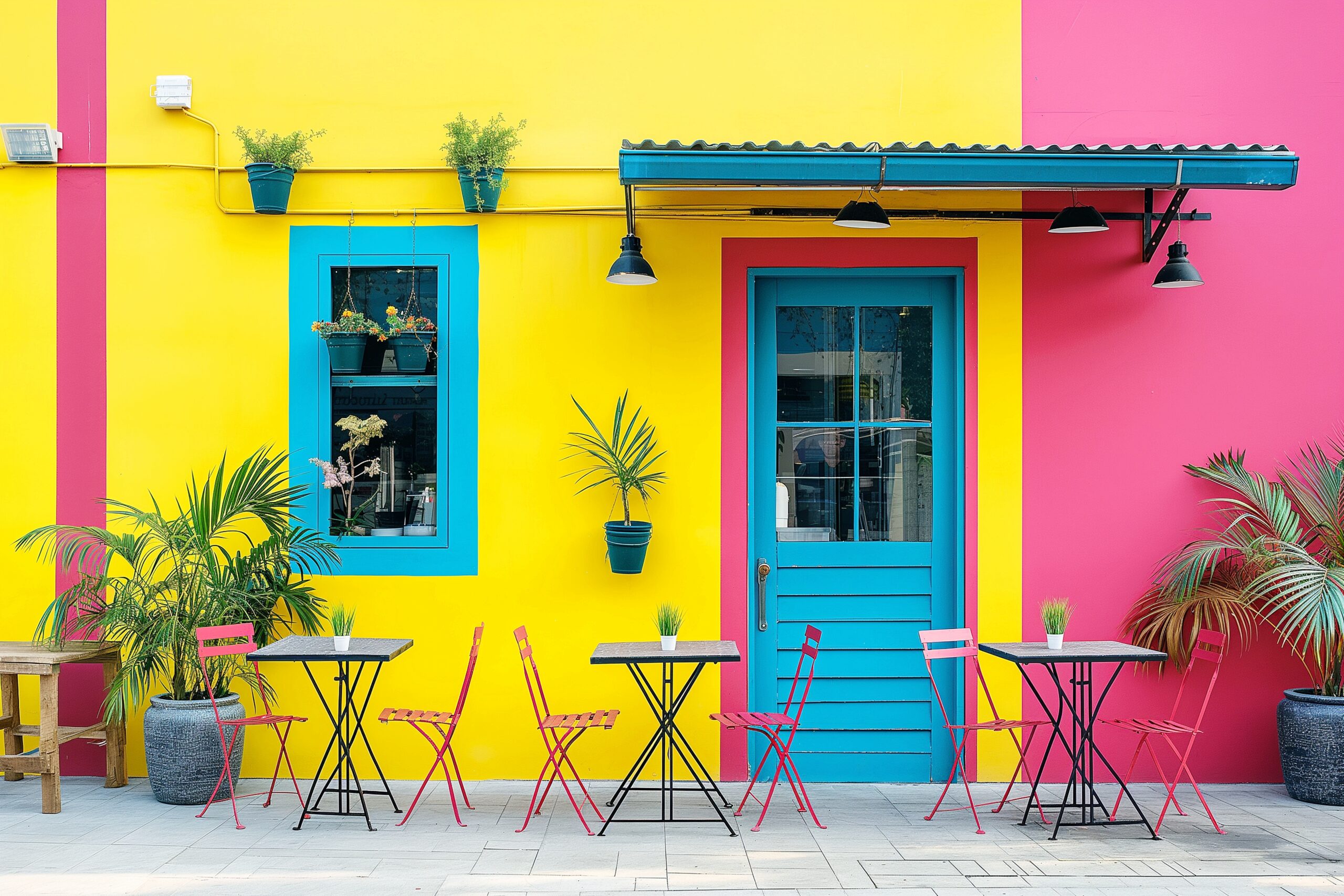 検索タグ:カフェ、cafe、飲食店、オシャレ、お洒落、おしゃれ、外観、建物、建築、お店、店舗、フリー素材、フリー画像、AI生成画像、レトロ感、海外、ヨーロッパ風、テラス席、小さなカフェ、デザイン、画像、外装、無料画像、前景、カフェショップフロント、カラフル、可愛い、かわいい、可愛い