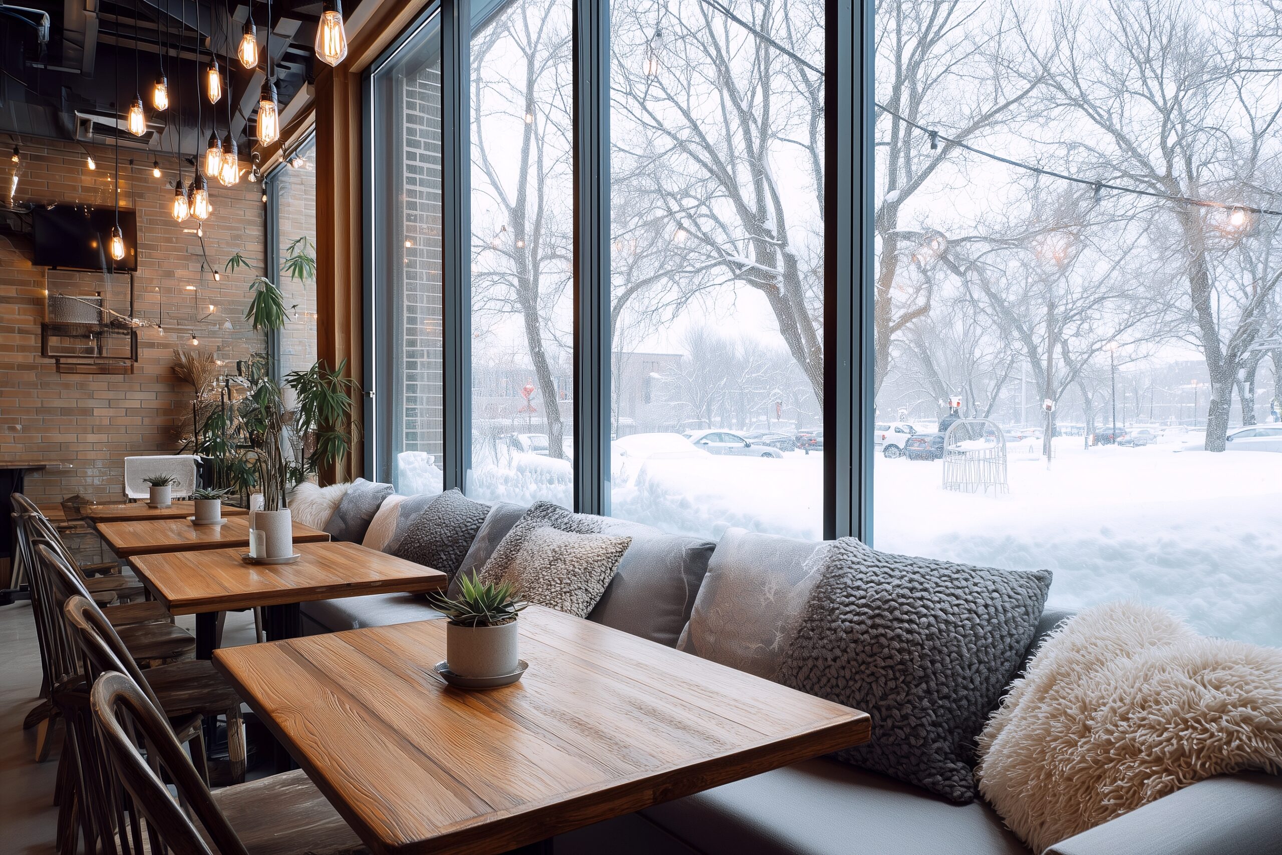 検索タグ:カフェ、cafe、飲食店、オシャレ、お洒落、おしゃれ、建物、建築、お店、店舗、フリー素材、フリー画像、AI生成画像、喫茶店、秋、Autumn、オータム、モダン、季節、free image、インテリア、innteria、内装、内観、背景素材、背景画像、Zoom背景、配信背景、冬、雪、寒い、季節、冬至、雪国、レトロ