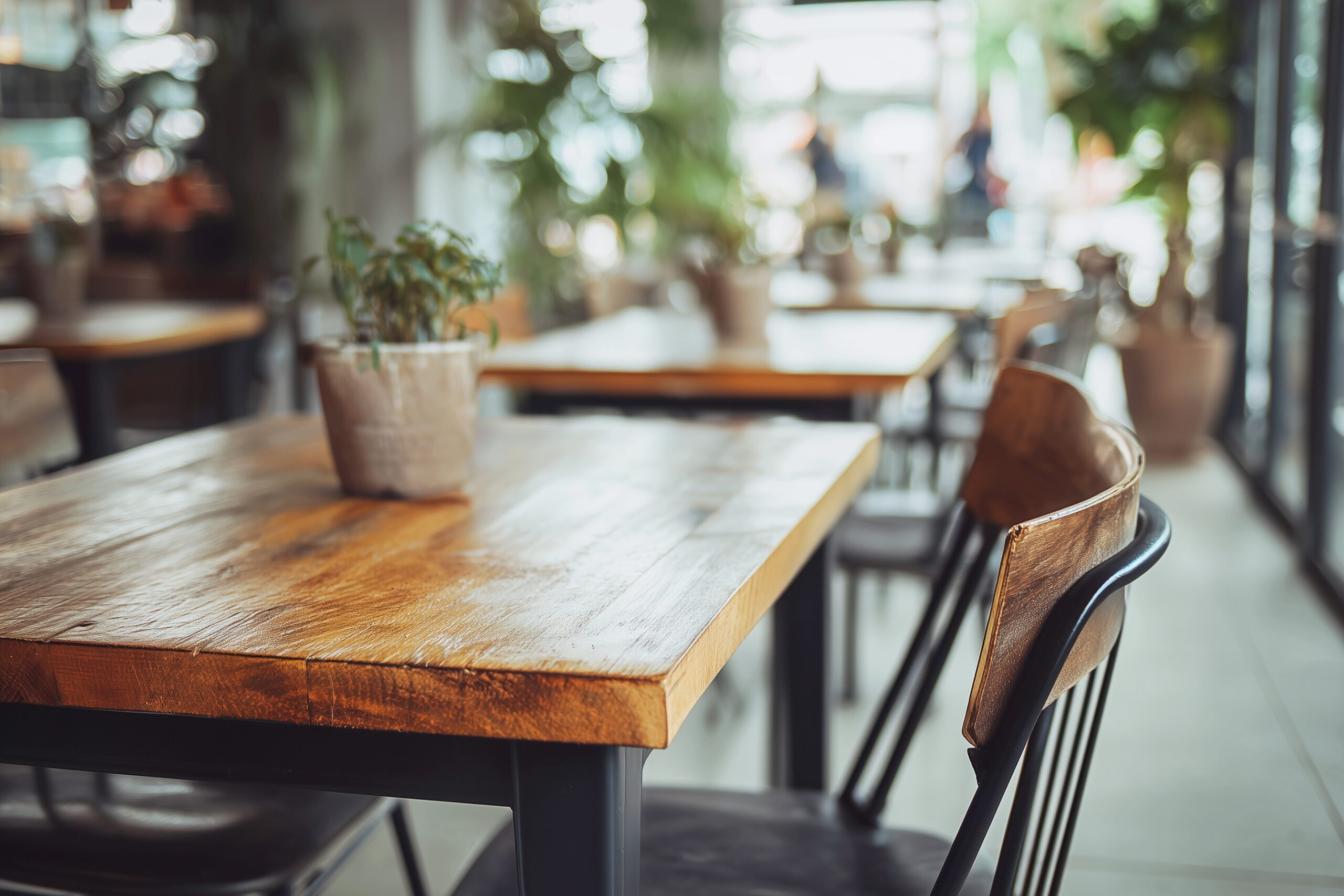 オシャレなカフェの木のテーブルと椅子の画像・フリー素材04