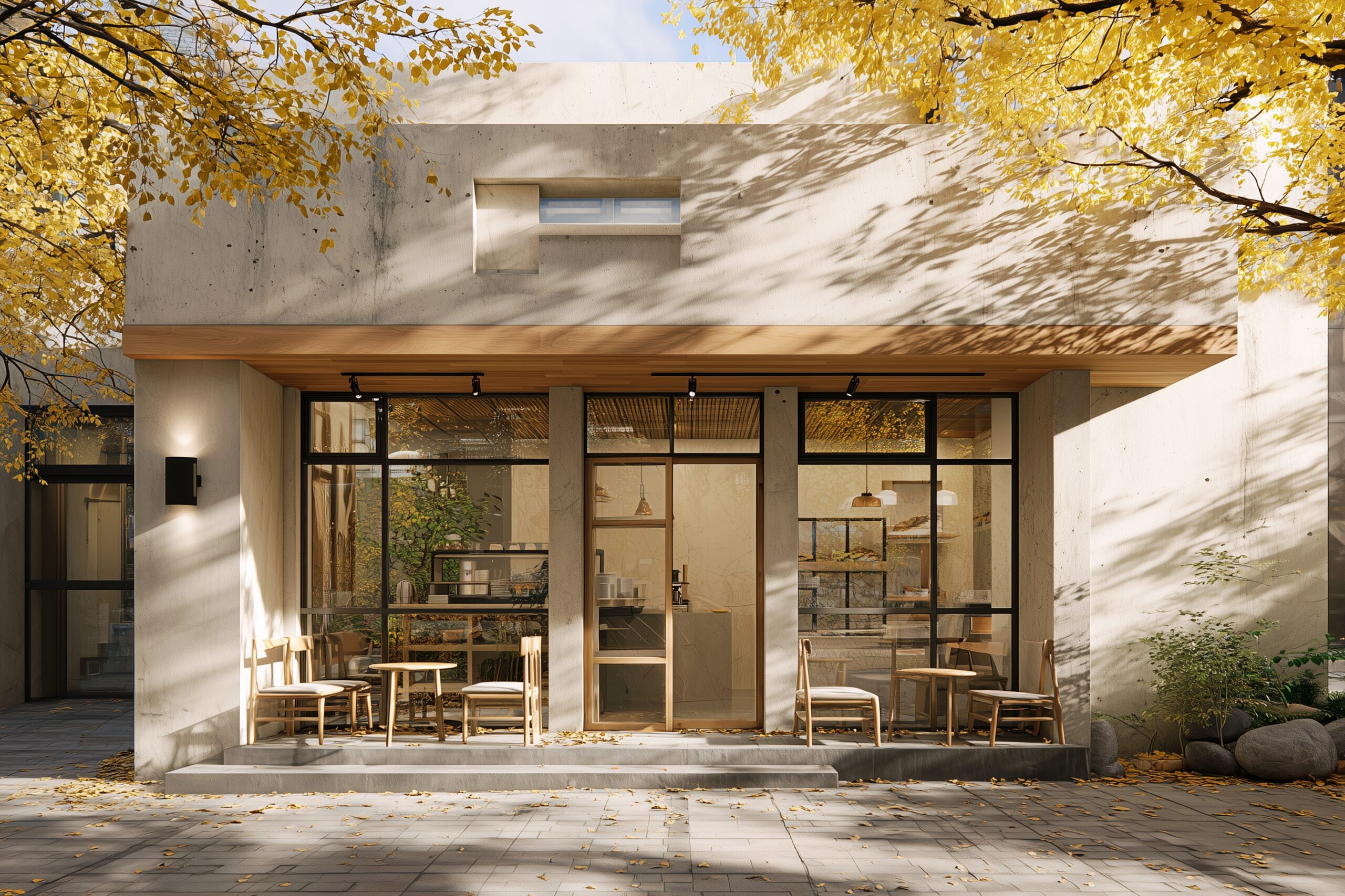 検索タグ:カフェ、cafe、飲食店、オシャレ、お洒落、おしゃれ、外観、建物、建築、お店、店舗、フリー素材、フリー画像、AI生成画像、外装、懐かしい雰囲気、喫茶店、秋、Autumn、オータム、モダン、季節、紅葉、季節、四季