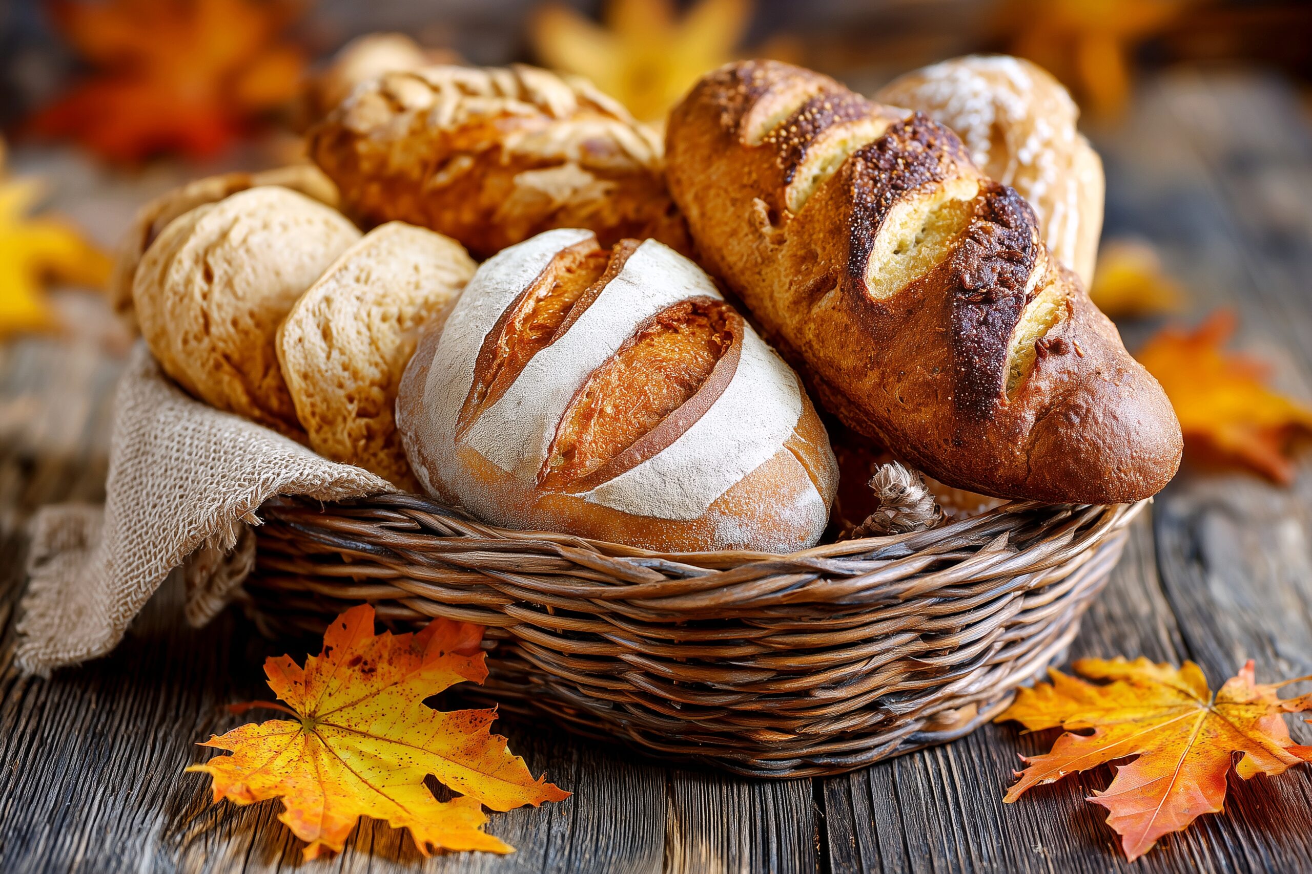 カゴに入った色とりどりのパン・カフェメニュー03