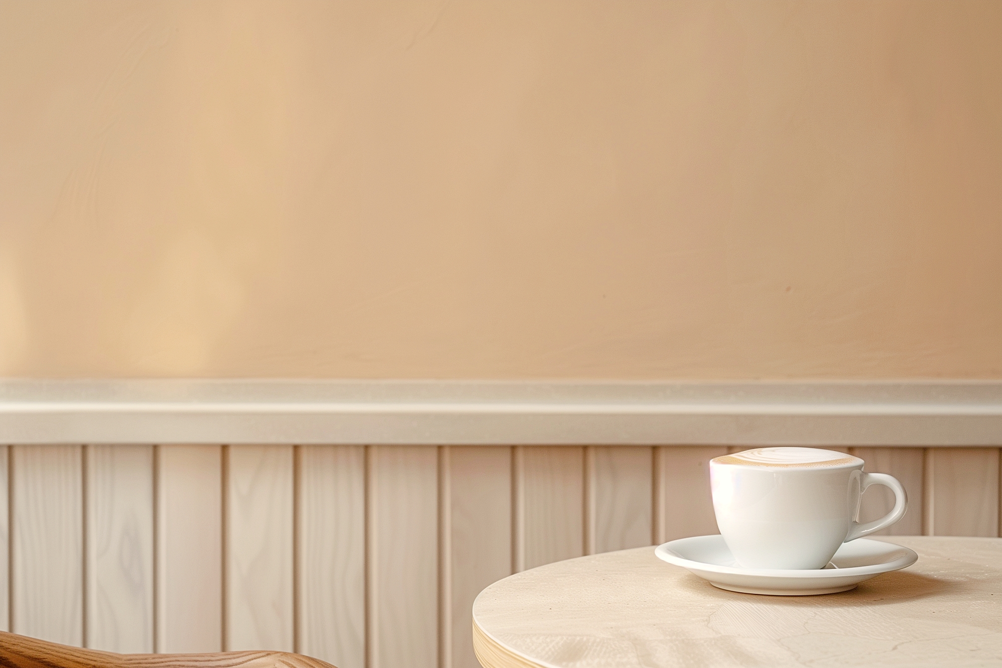 検索タグ:カフェ、インテリア、cafe、interior、店内、飲食店、オシャレ、お洒落、おしゃれ、木のテーブル、ホットコーヒー、フリー素材、フリー画像、AI生成画像、カフェラテ、モーニング、コピースペース、テキストスペース、背景、壁紙、珈琲、シンプル、カフェオレ、カプチーノ、泡、あわ、ラテアート