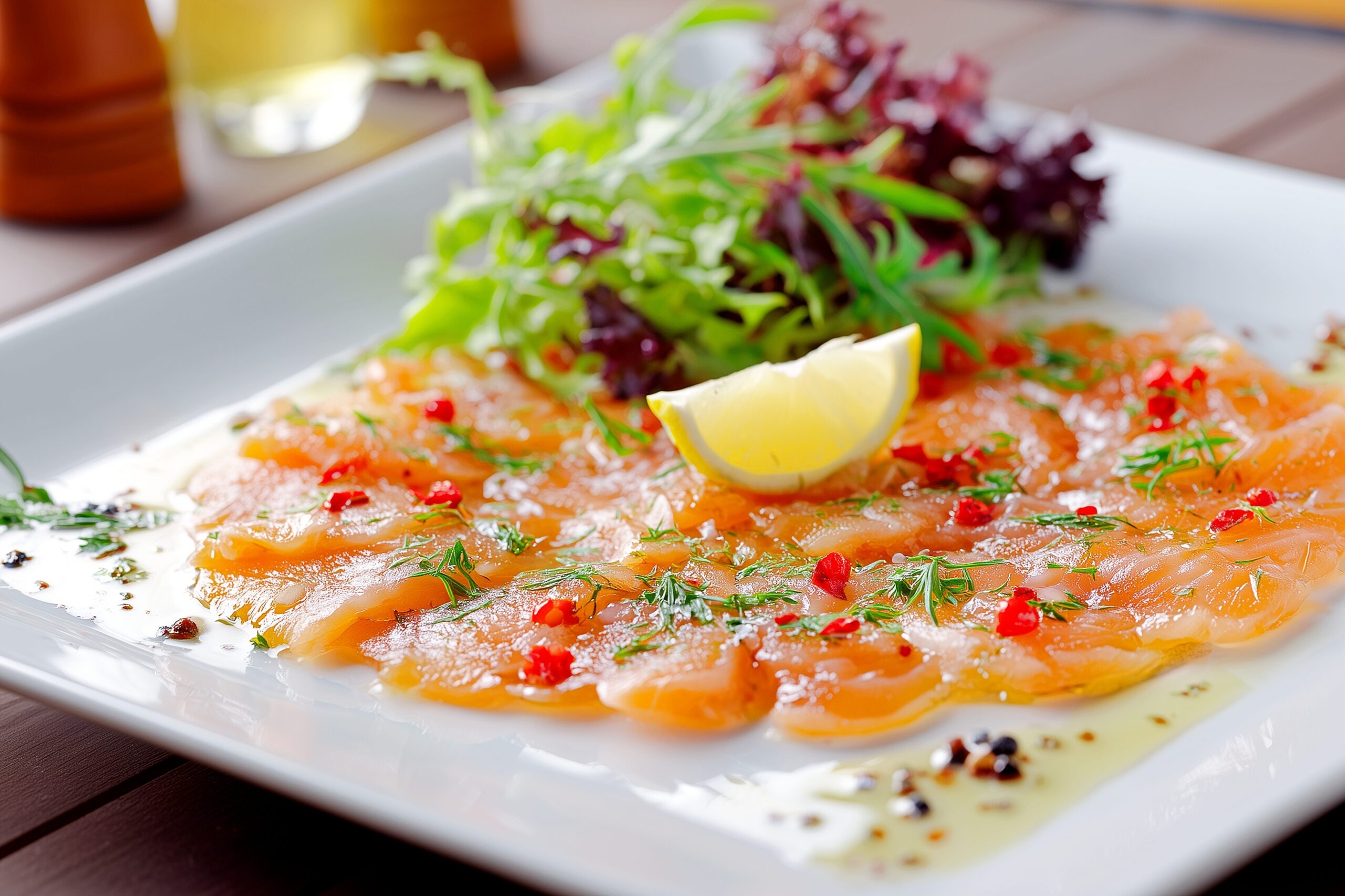 【料理】カフェでサーモンのカルパッチョを注文・食べ物フリー素材02