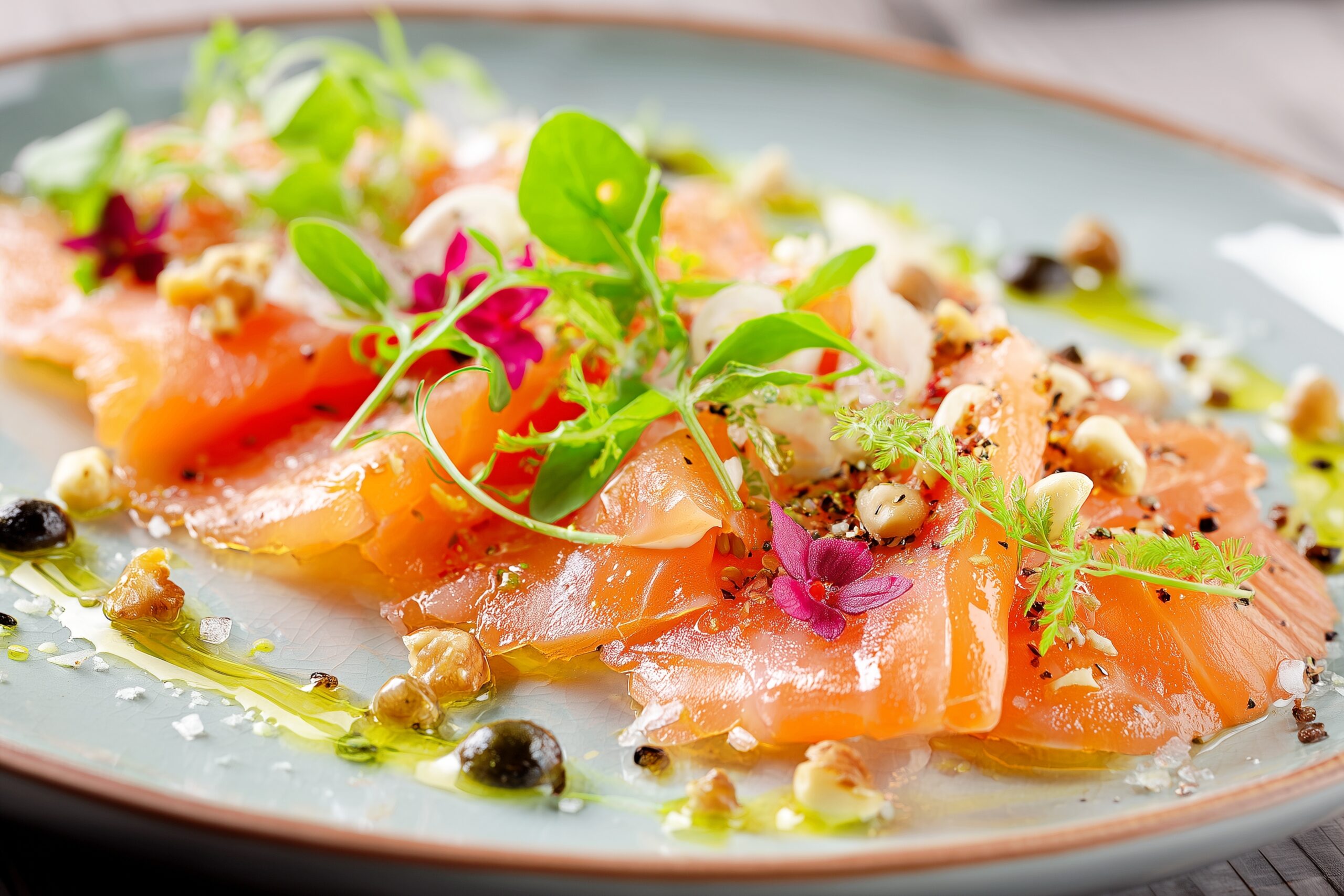カフェでサーモンのカルパッチョを注文・食べ物フリー素材0