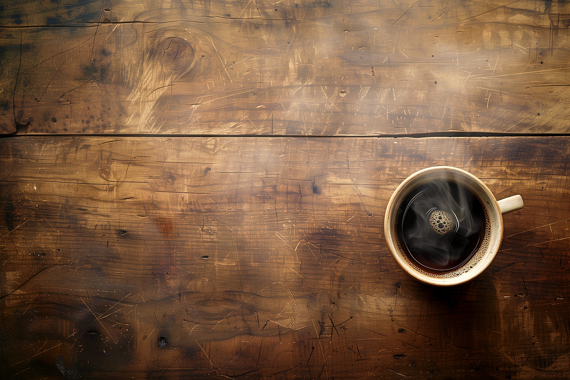 検索タグ:カフェ、インテリア、cafe、interior、店内、飲食店、オシャレ、お洒落、おしゃれ、木のテーブル、ホットコーヒー、フリー素材、フリー画像、AI生成画像、カフェラテ、モーニング、コピースペース、テキストスペース、ブラックコーヒー、背景、壁紙、珈琲、シンプル