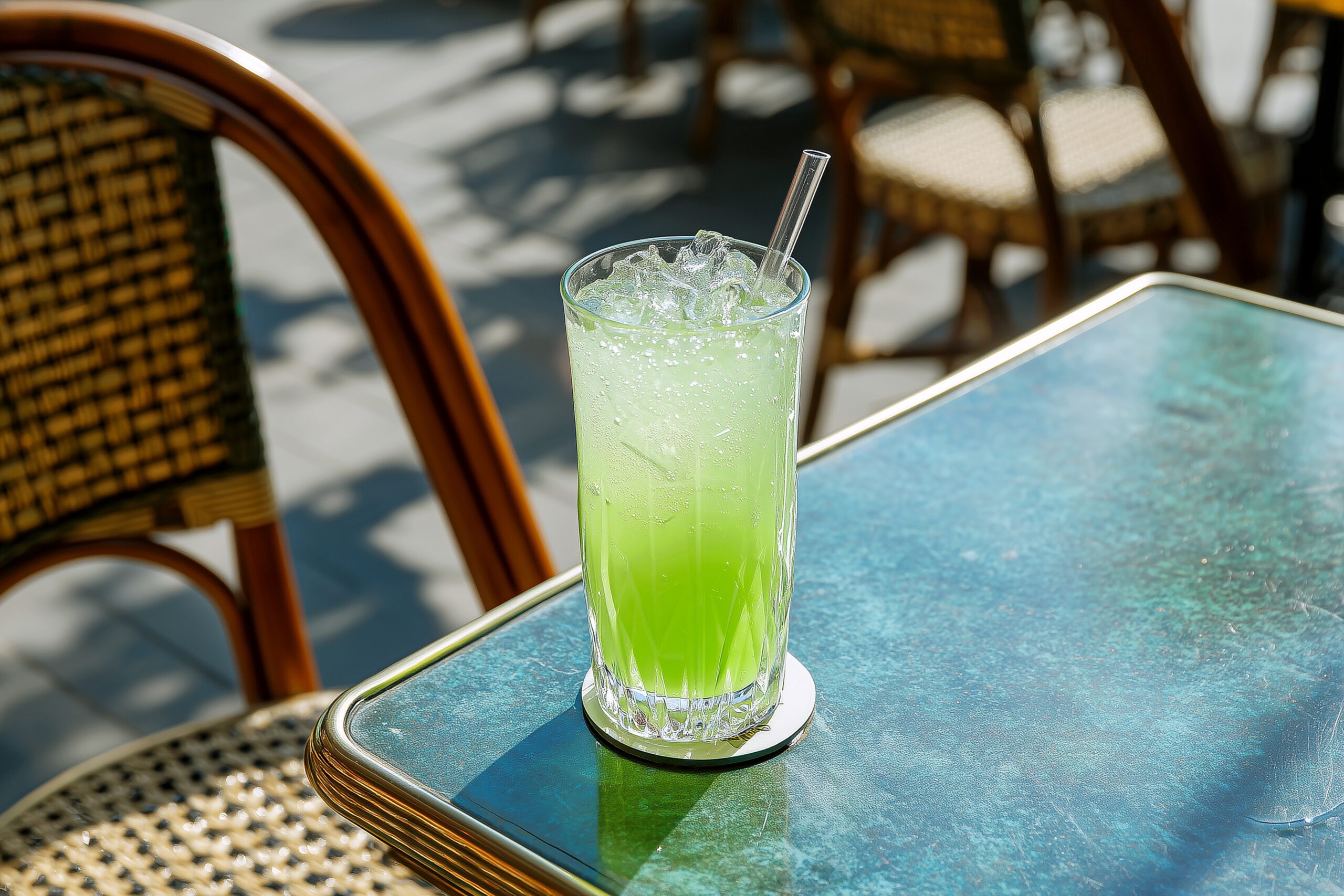 検索タグ:カフェ、cafe、店内、飲食店、オシャレ、お洒落、おしゃれ、フリー素材、フリー画像、AI生成画像、モーニング、コピースペース、テキストスペース、背景、壁紙、メロンソーダ、ジュース、飲み物、アイス、冷たい、ひんやり、ソーダ、メロンジュース、スカッシュ、炭酸飲料、夏、季節、サマー