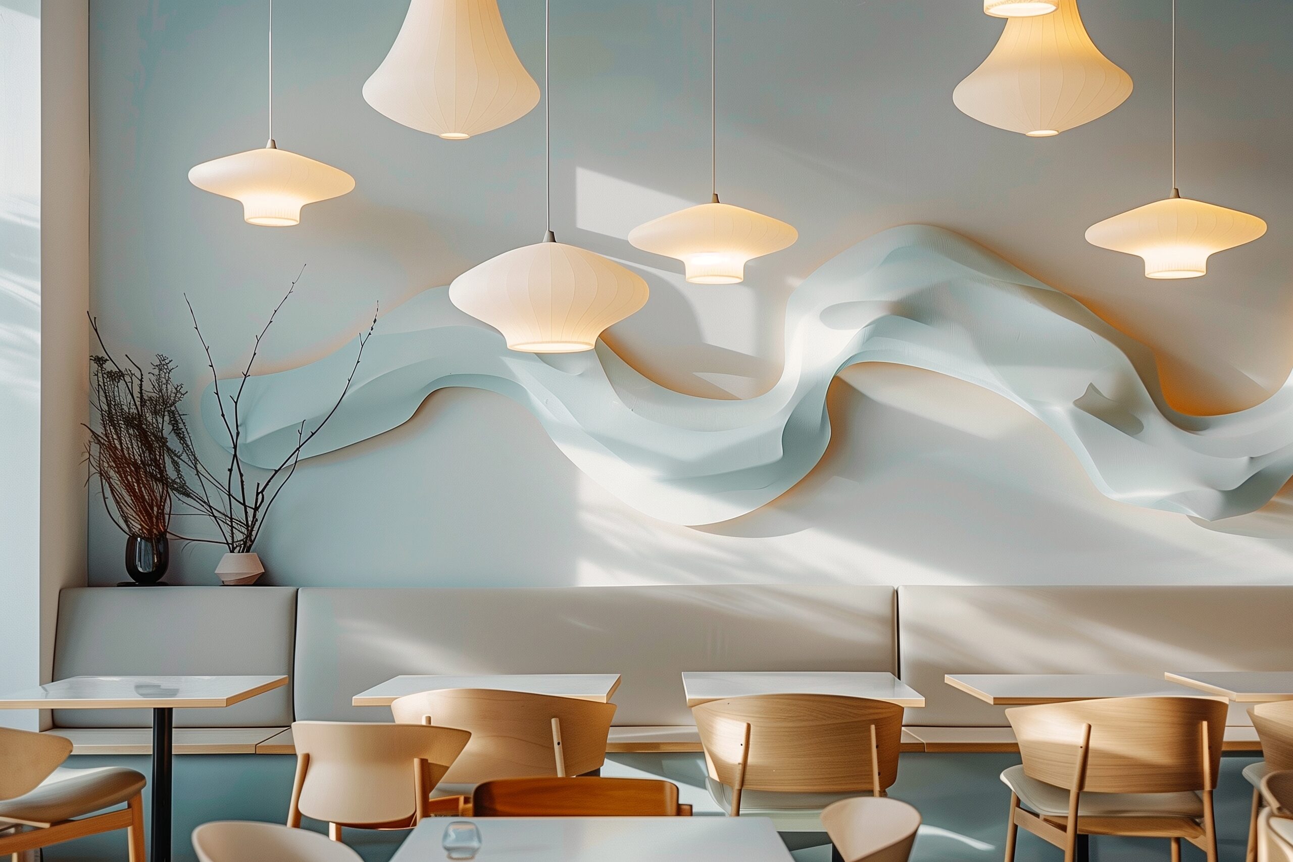 検索タグ:カフェ、cafe、飲食店、オシャレ、お洒落、おしゃれ、お店、店舗、フリー素材、フリー画像、AI生成画像、レトロ感、デザイン、無料画像、ランプ、ライト、モダン、ビンテージ、ヴィンテージ、照明、インテリア、内装、内観