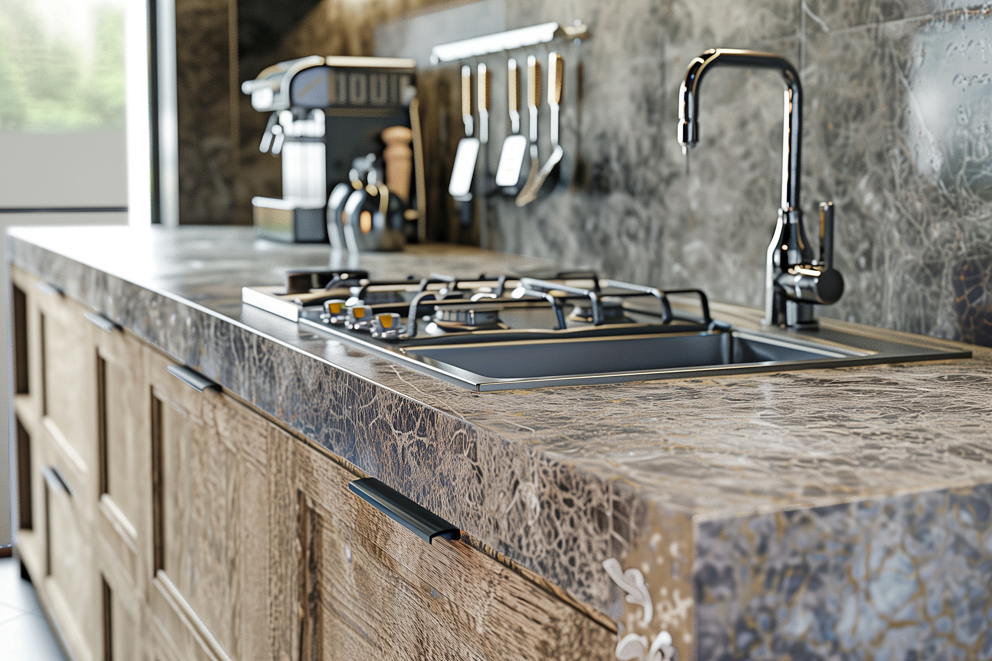 検索タグ:カフェ、インテリア、cafe、interior、店内、飲食店、オシャレ、お洒落、おしゃれ、フリー素材、フリー画像、AI生成画像、内装、内観、室内、店舗、お店、モダン、壁紙、ZOOM背景、配信用、背景素材、アイキャッチ、サムネイル、喫茶店、キッチン、厨房、調理場所、シンク、流し台、アイランド、水回り、水廻り、水まわり、カウンター