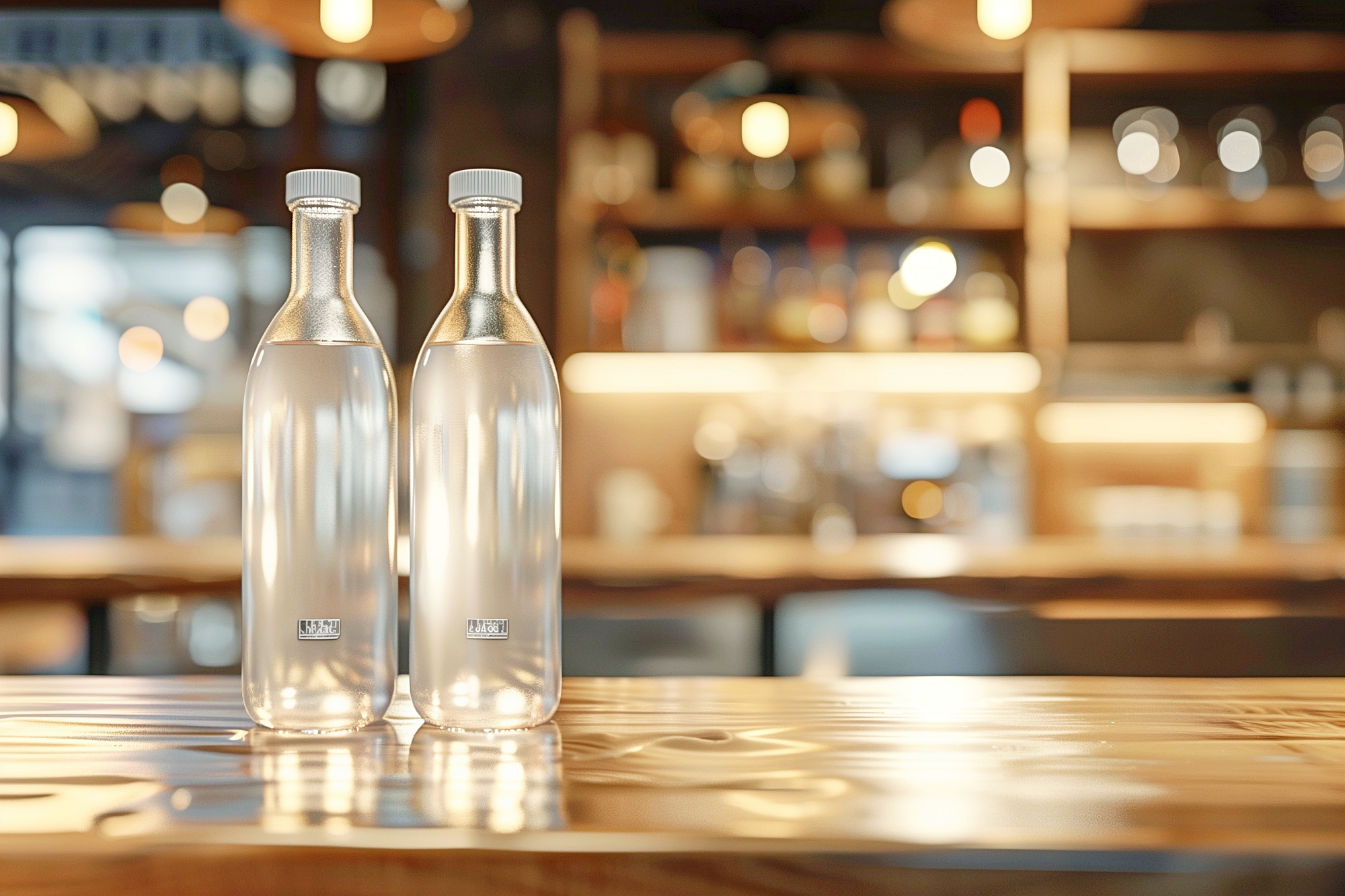 カフェカウンターに置かれたオシャレボトル・フリー素材05