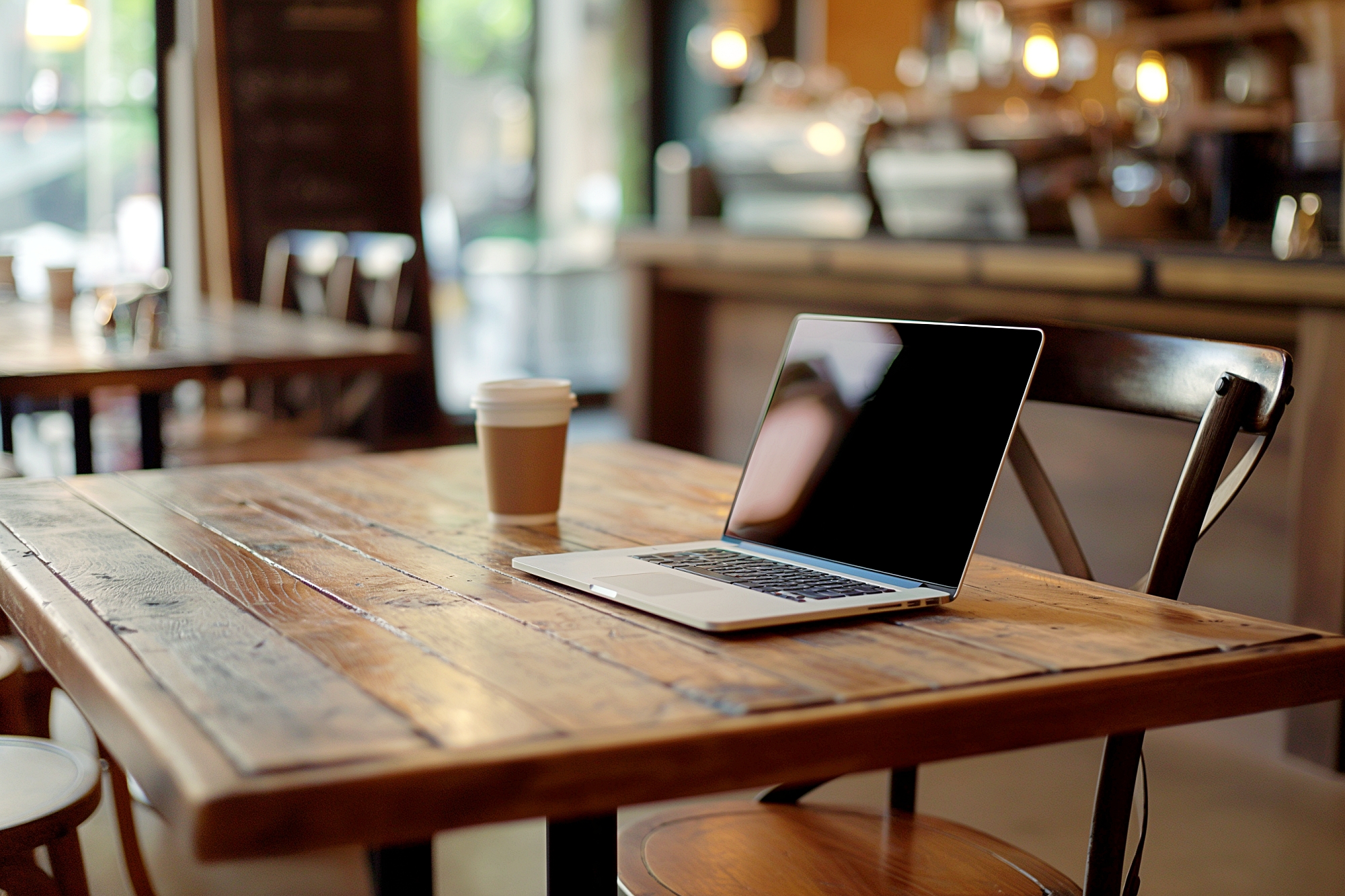 検索タグ:カフェ、インテリア、cafe、interior、店内、飲食店、オシャレ、お洒落、おしゃれ、フリー素材、フリー画像、AI生成画像、内装、内観、室内、店舗、お店、アイキャッチ、サムネイル、喫茶店、カフェテーブル、パソコン、ノートパソコン、laptop、PC、小物、ガジェット、フリーランス、ビジネス、仕事、副業、タイピング、インターネット検索