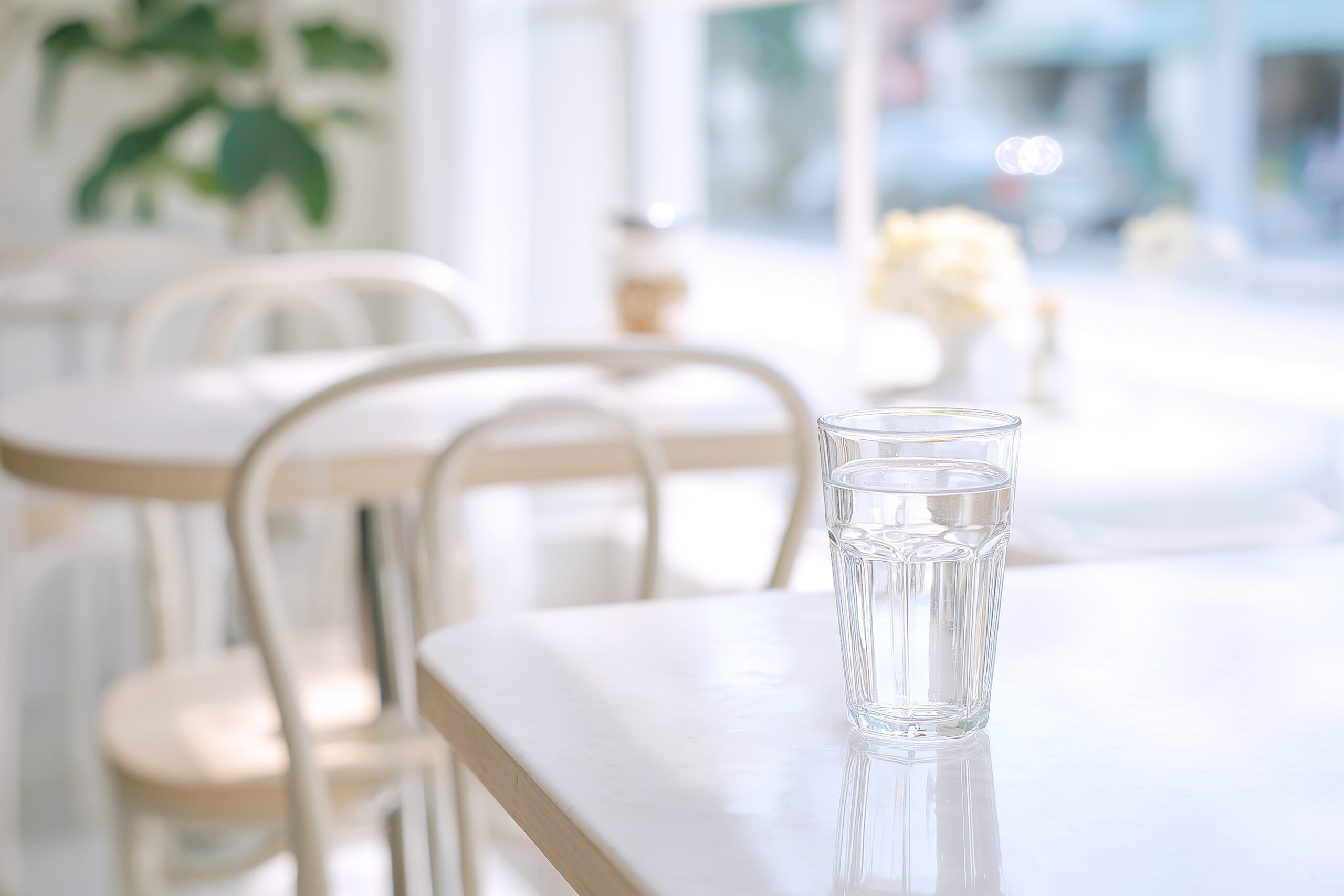 カフェテーブルに置かれたグラスに入った水・フリー素材04